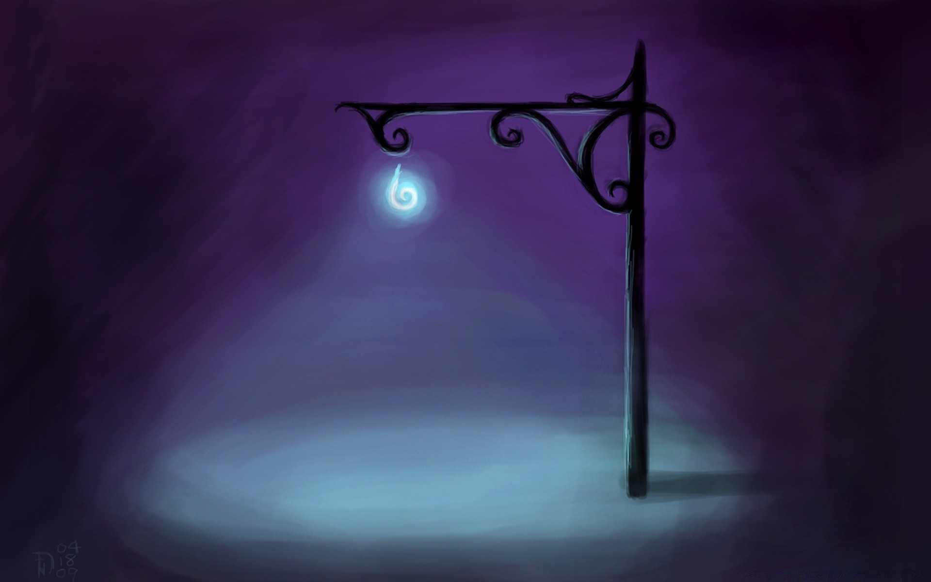 Abstrakcyjna latarnia świeci w fioletowym mroku
