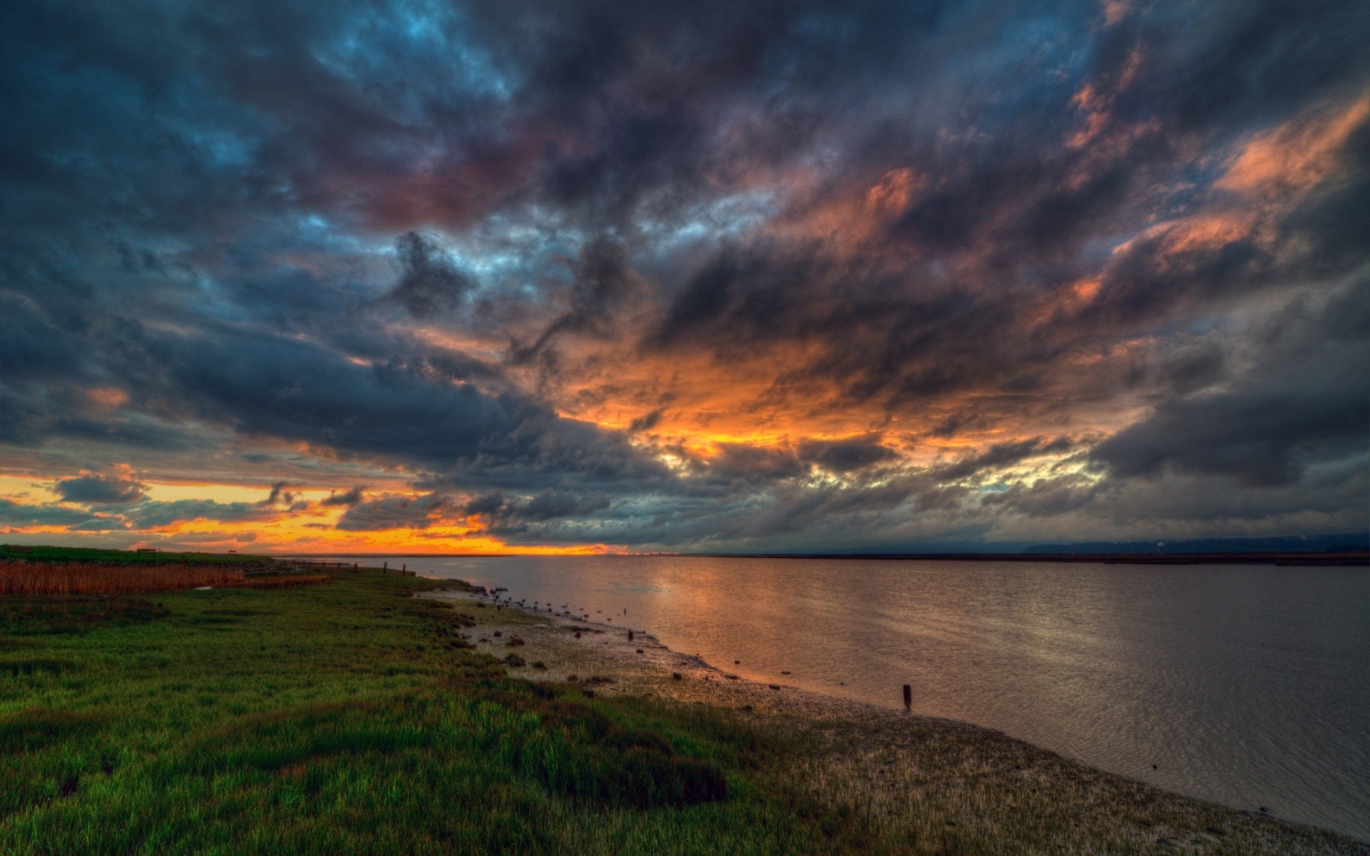 Zdjęcie pięknego zachodu słońca nad rzeką