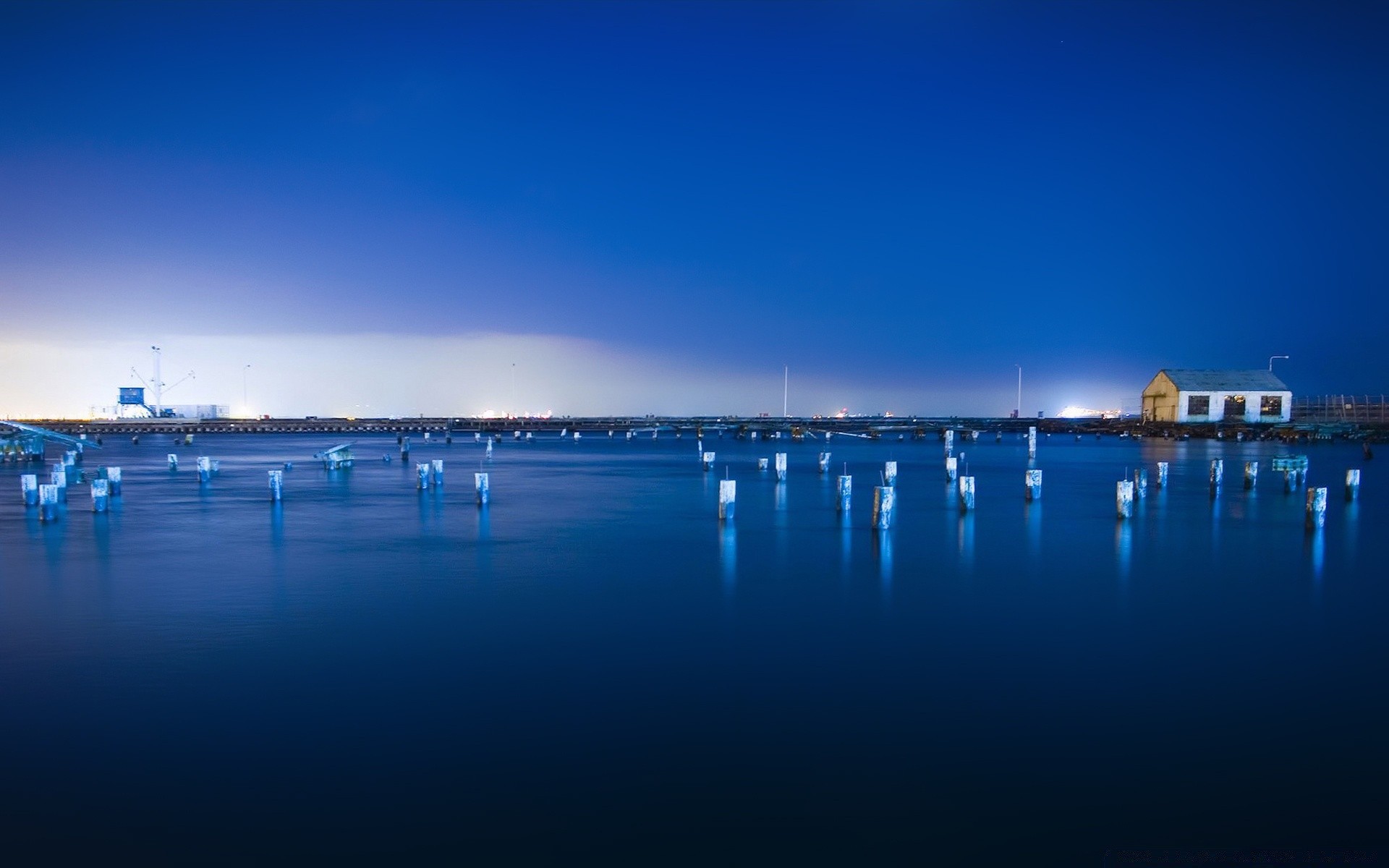 Błękitno-niebieski staw z nocnym niebem