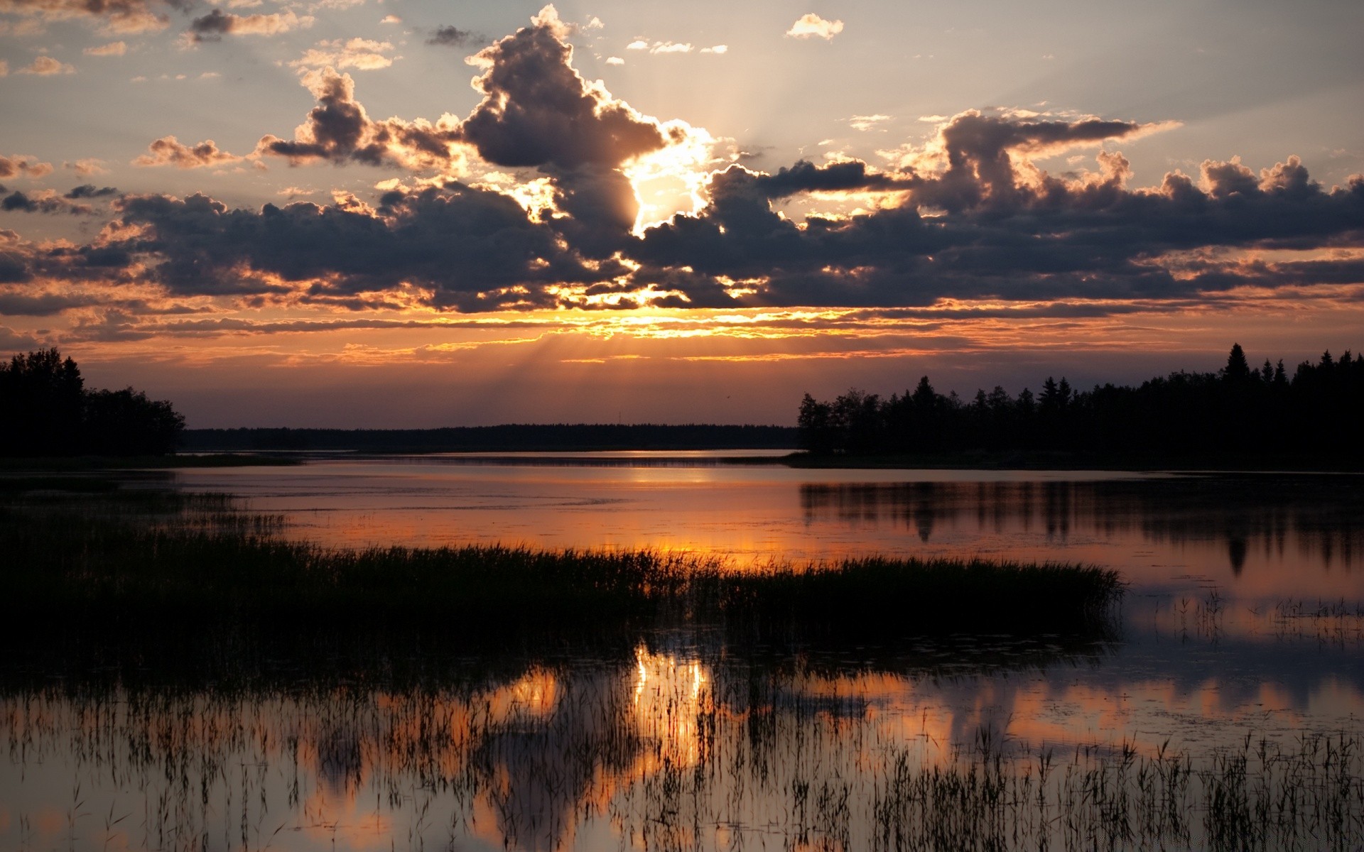 Strumienie wypełniły staw który oświetla zachód słońcaStrumienie wypełniły staw który oświetla Zachód słońca