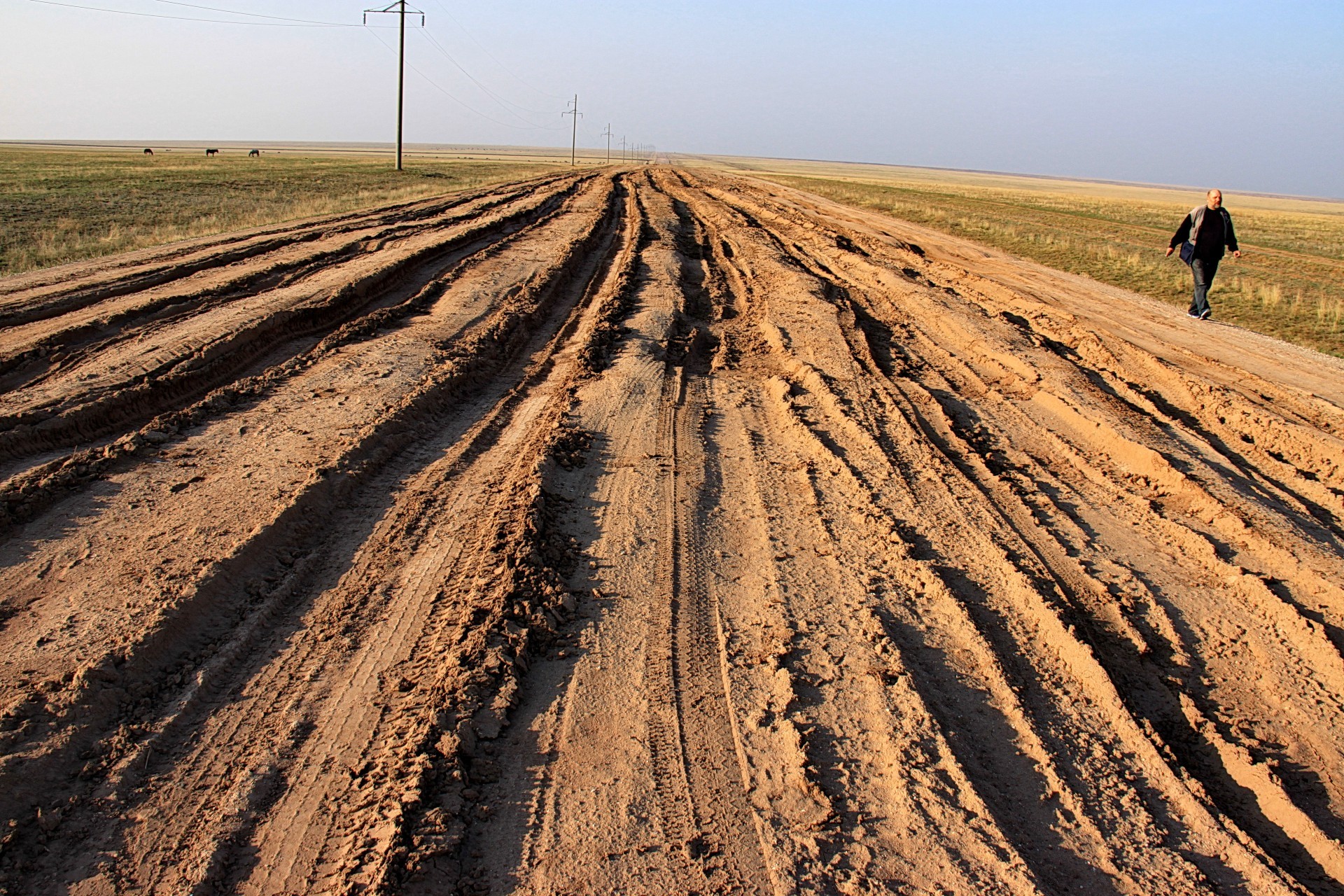Piaszczysta droga prowadząca do Dal. idzie człowiek