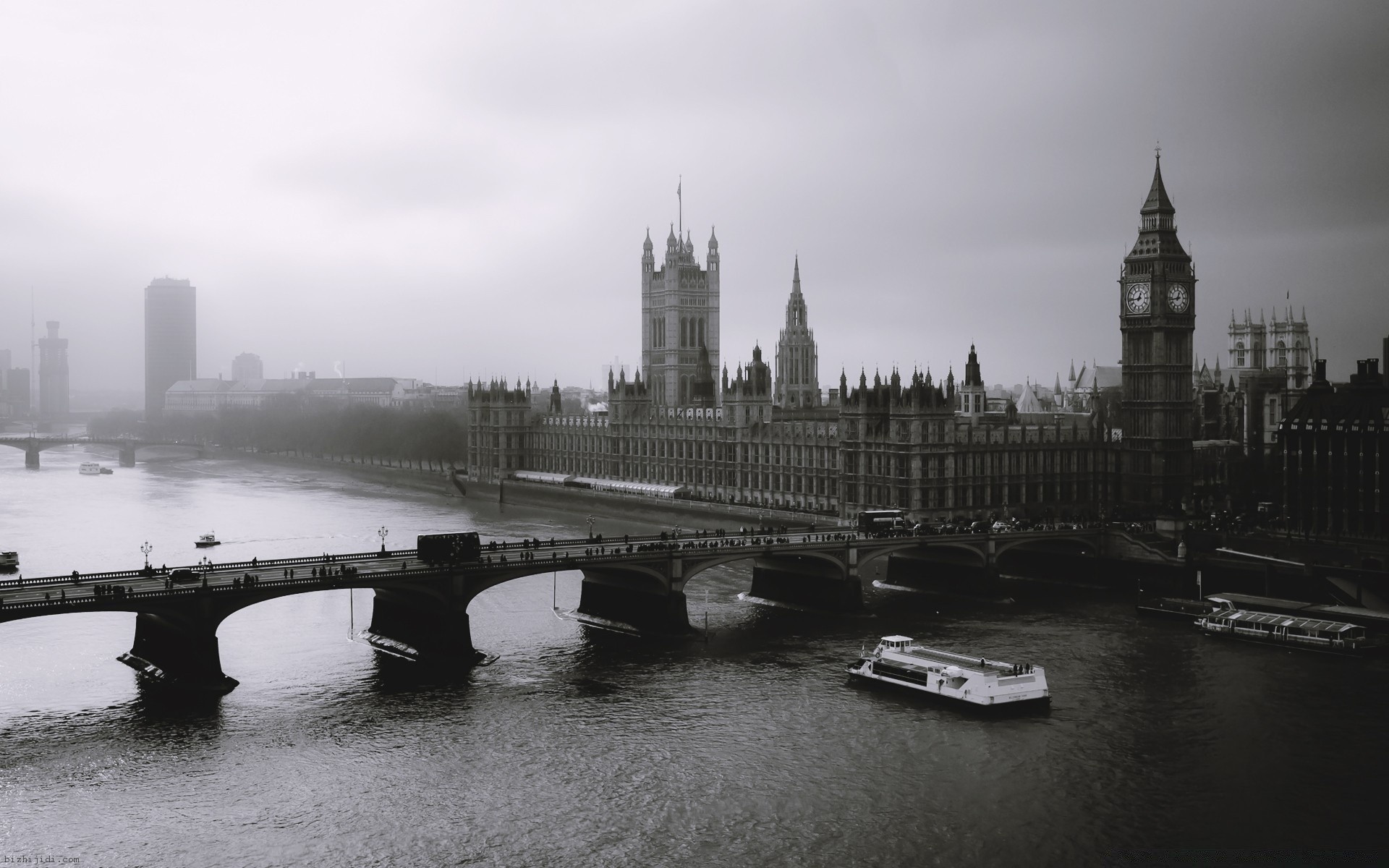 Miasto nad rzeką. ilustracja Monochromatyczna