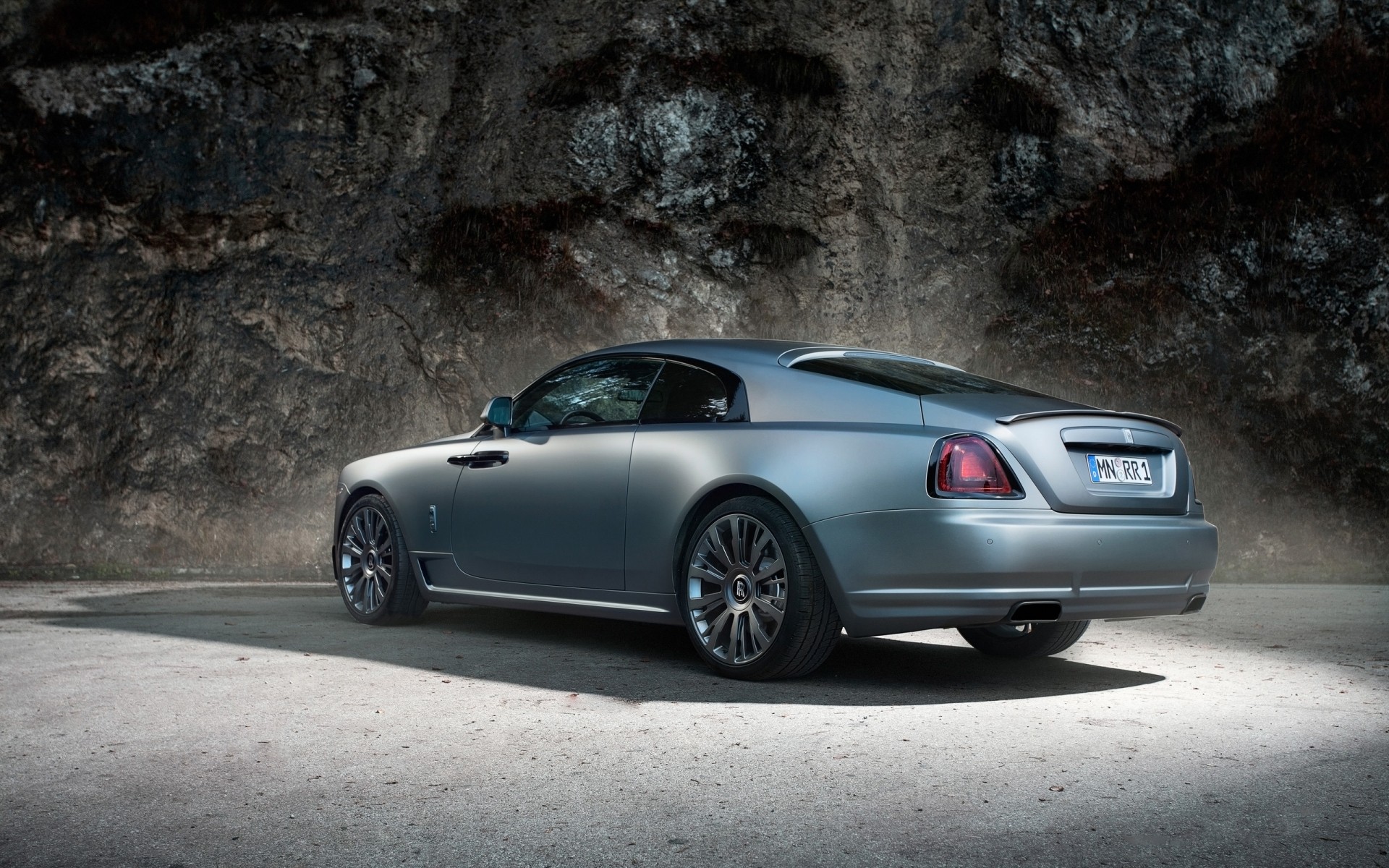 Grafitowy samochód rolls royce stoi na chodniku