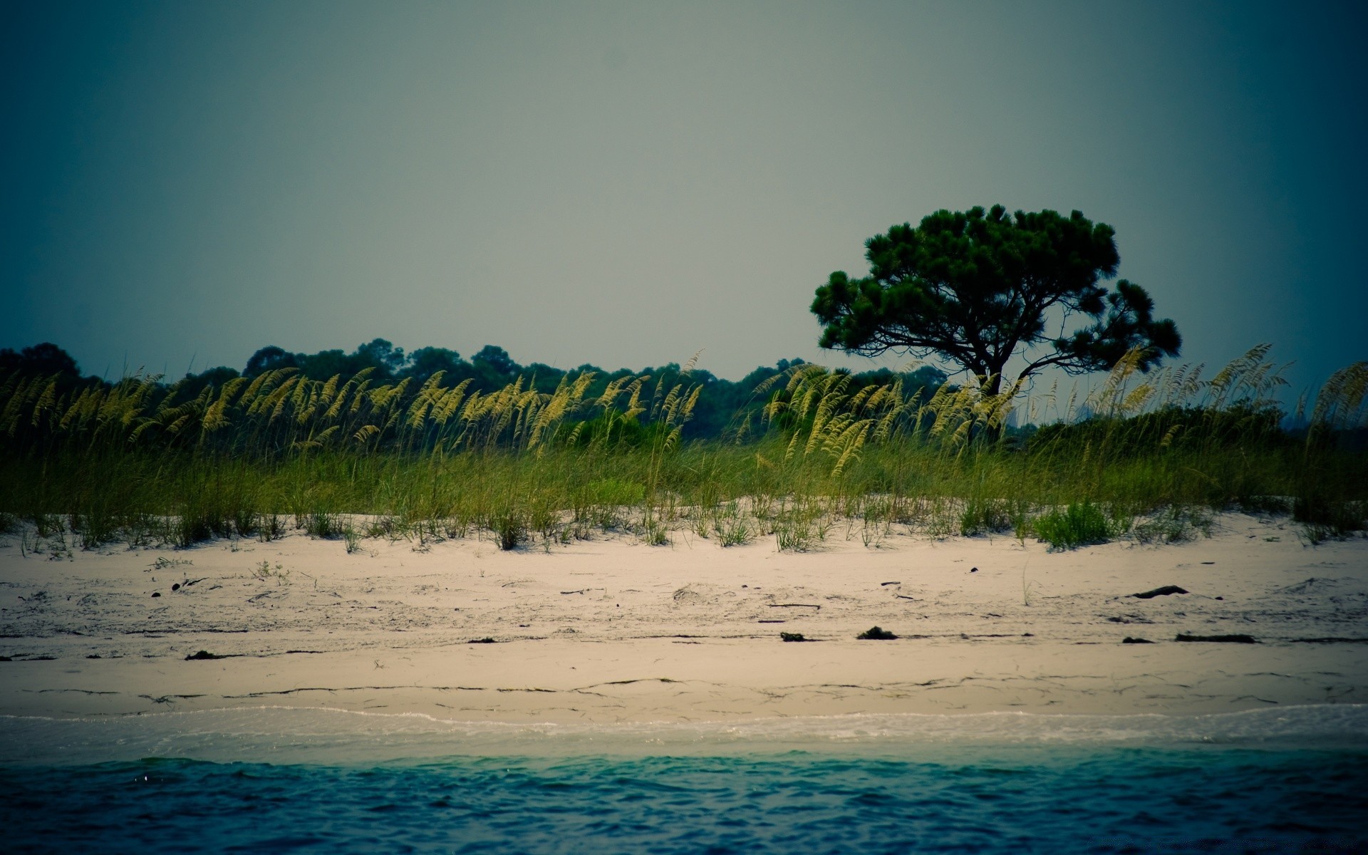 Piaszczysty brzeg i samotna sosna