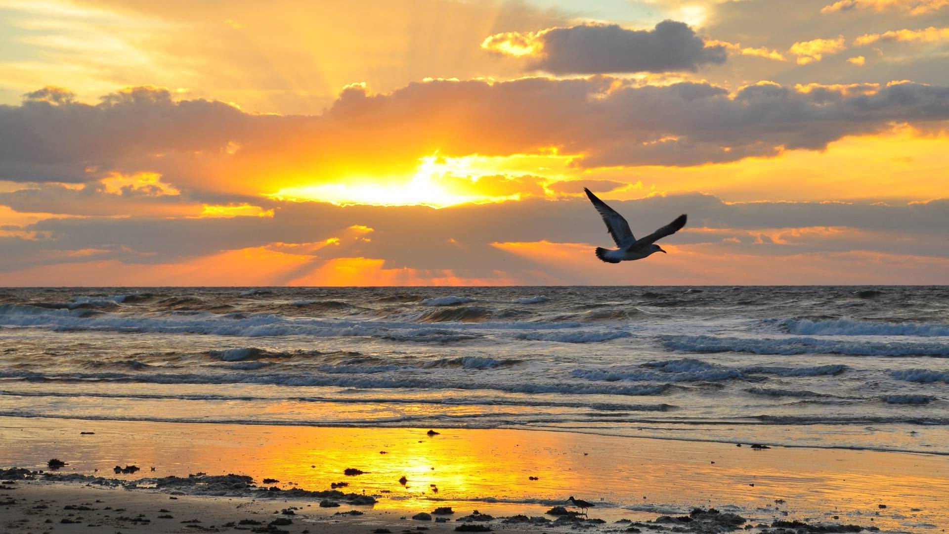 Zachód słońca nad morzem. Samotna stojąca Palma