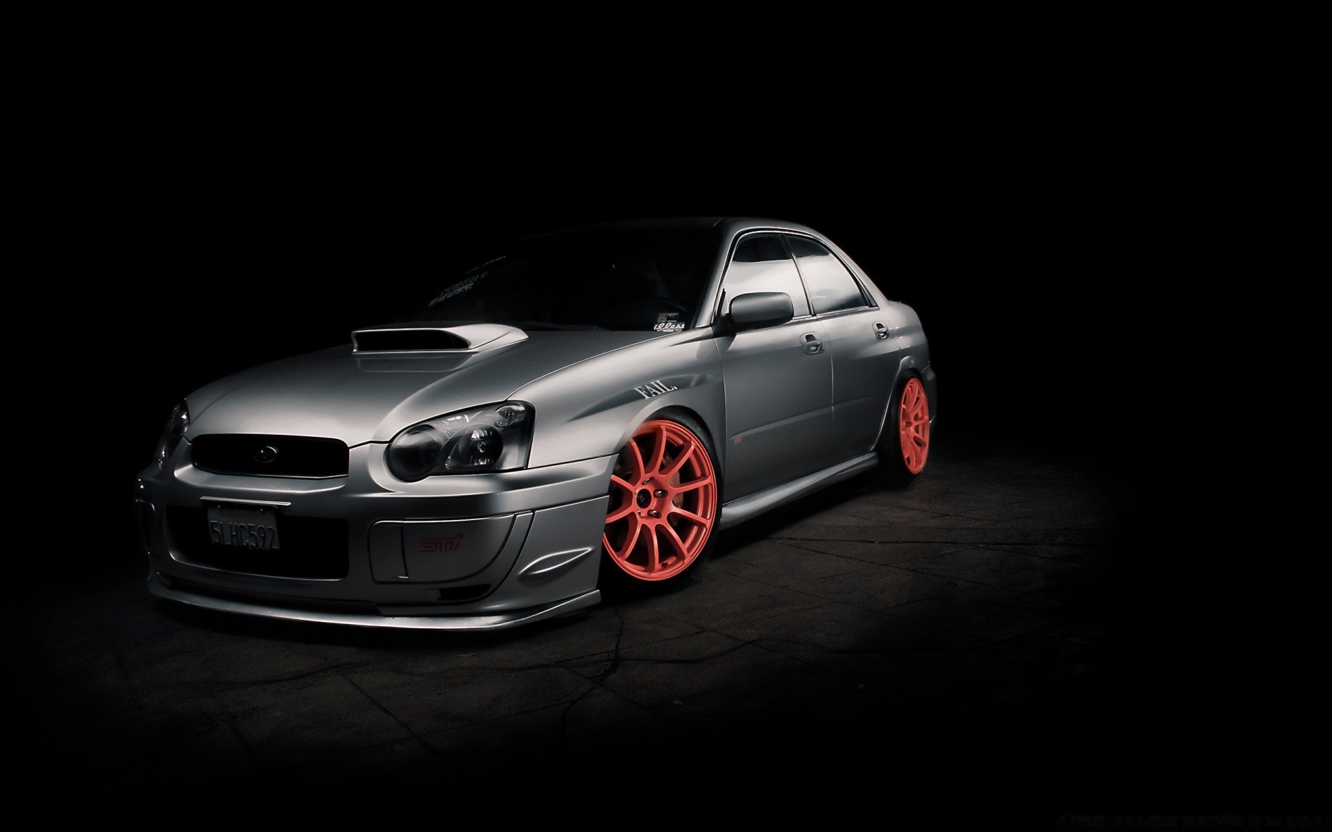 Szary samochód na pomarańczowych felgach