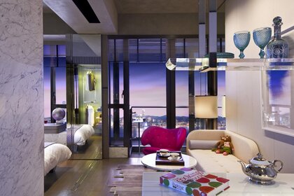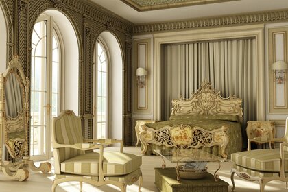 Wnętrze nowoczesnej sypialni z przewagą zieleni