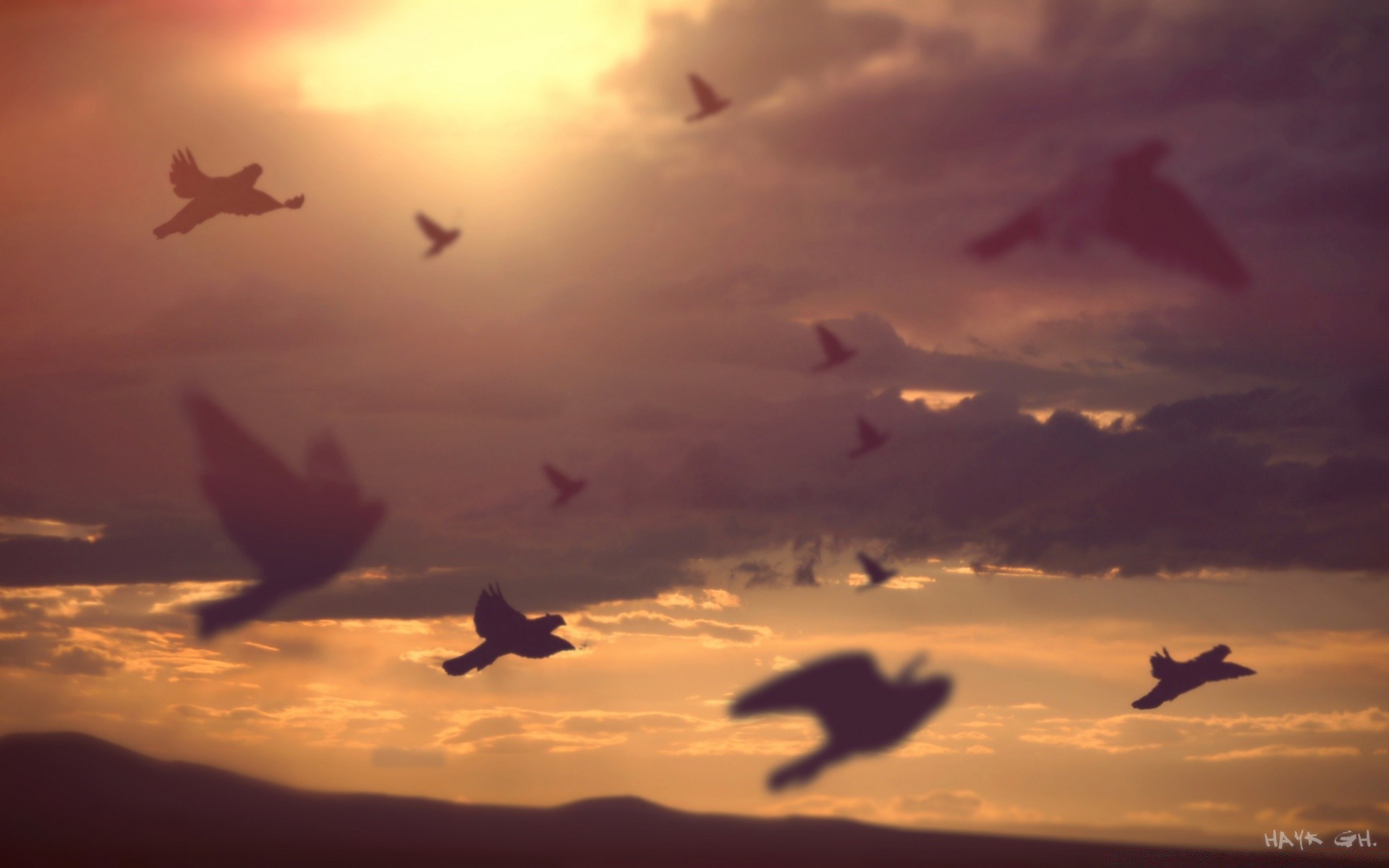 Stado ptaków leci po niebie