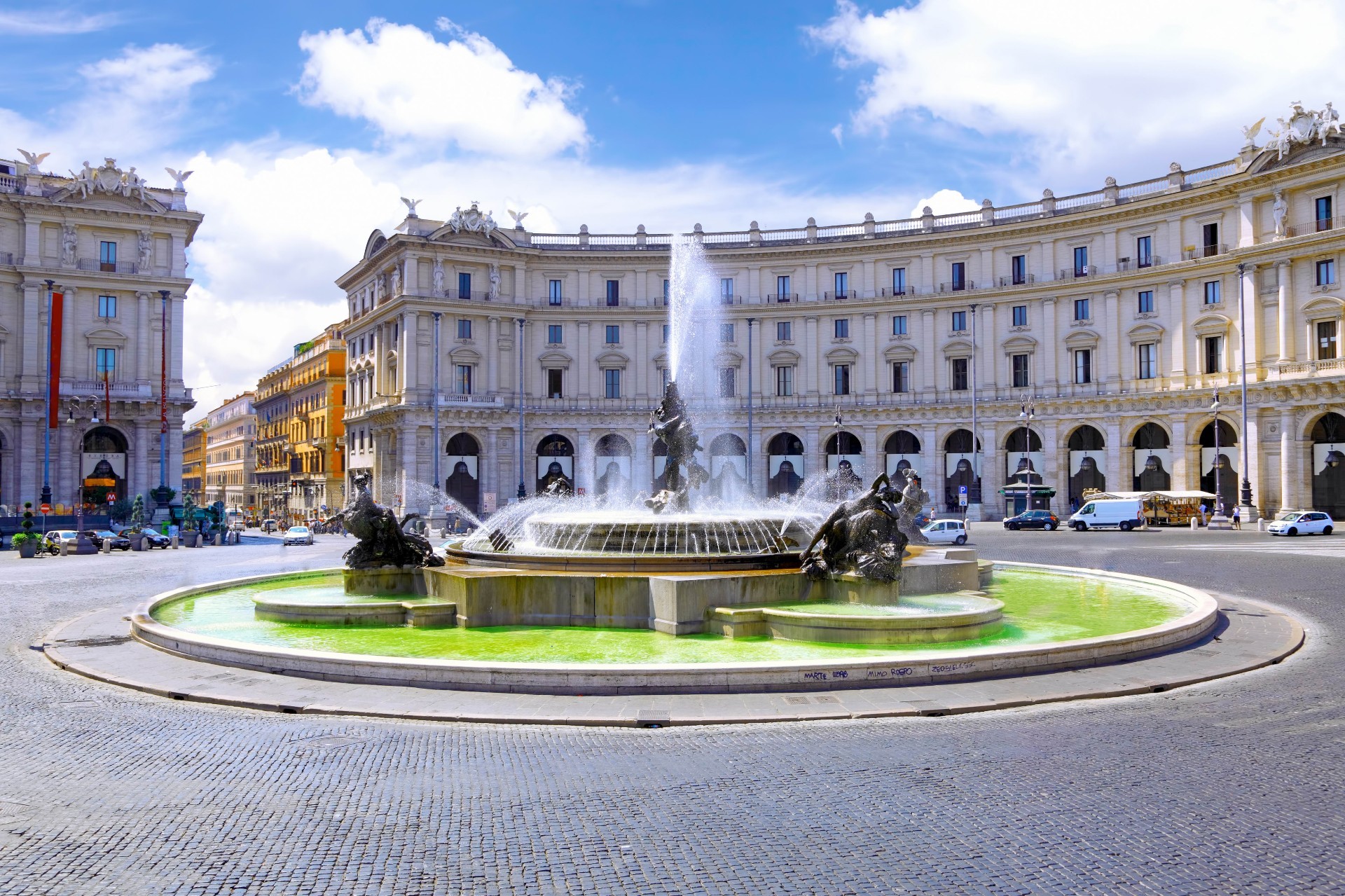 Piękna fontanna w pobliżu budynku