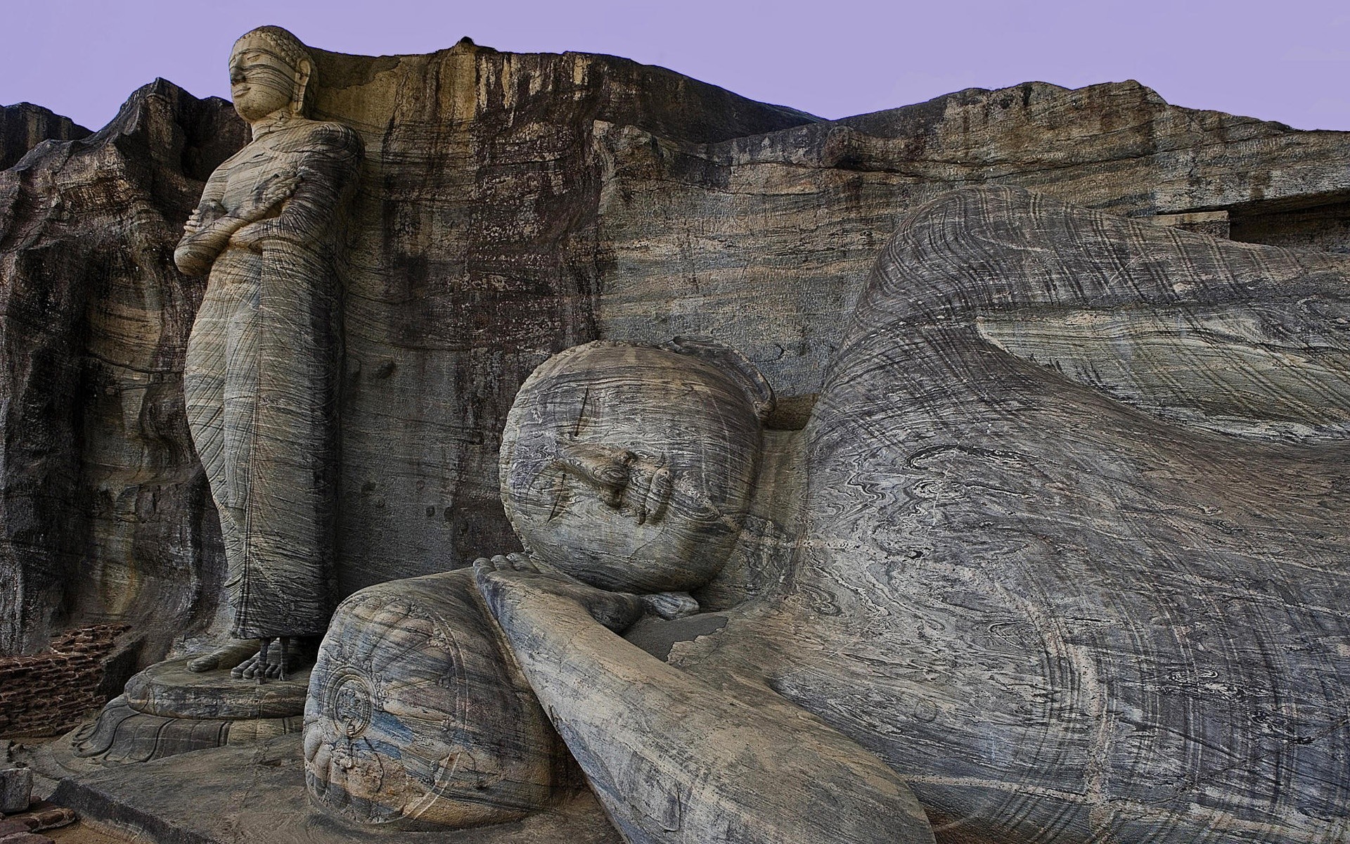 Buddyjskie figury wyrzeźbione w skale
