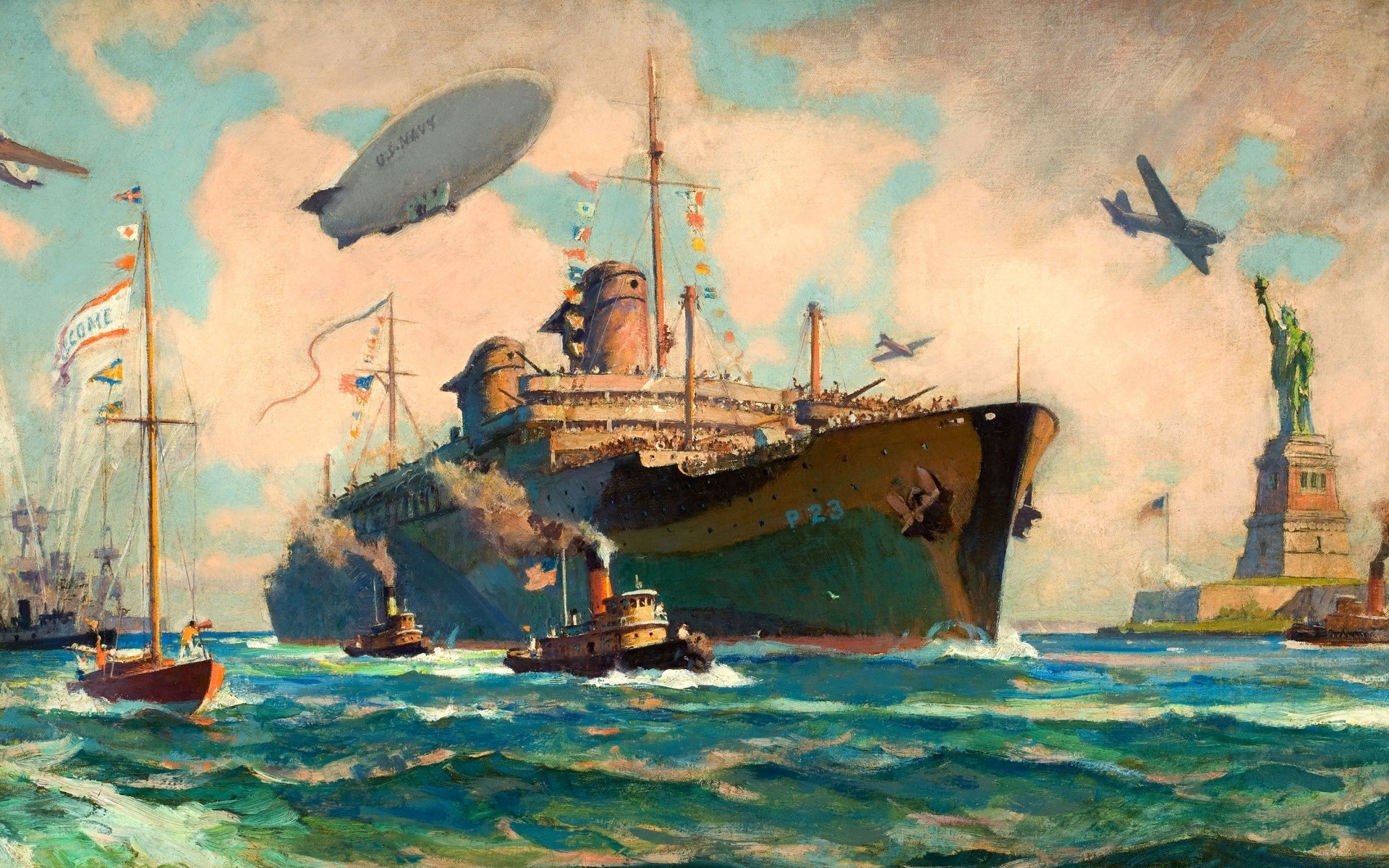 Rysunek farbami. Walki Wojskowe u wybrzeży Ameryki