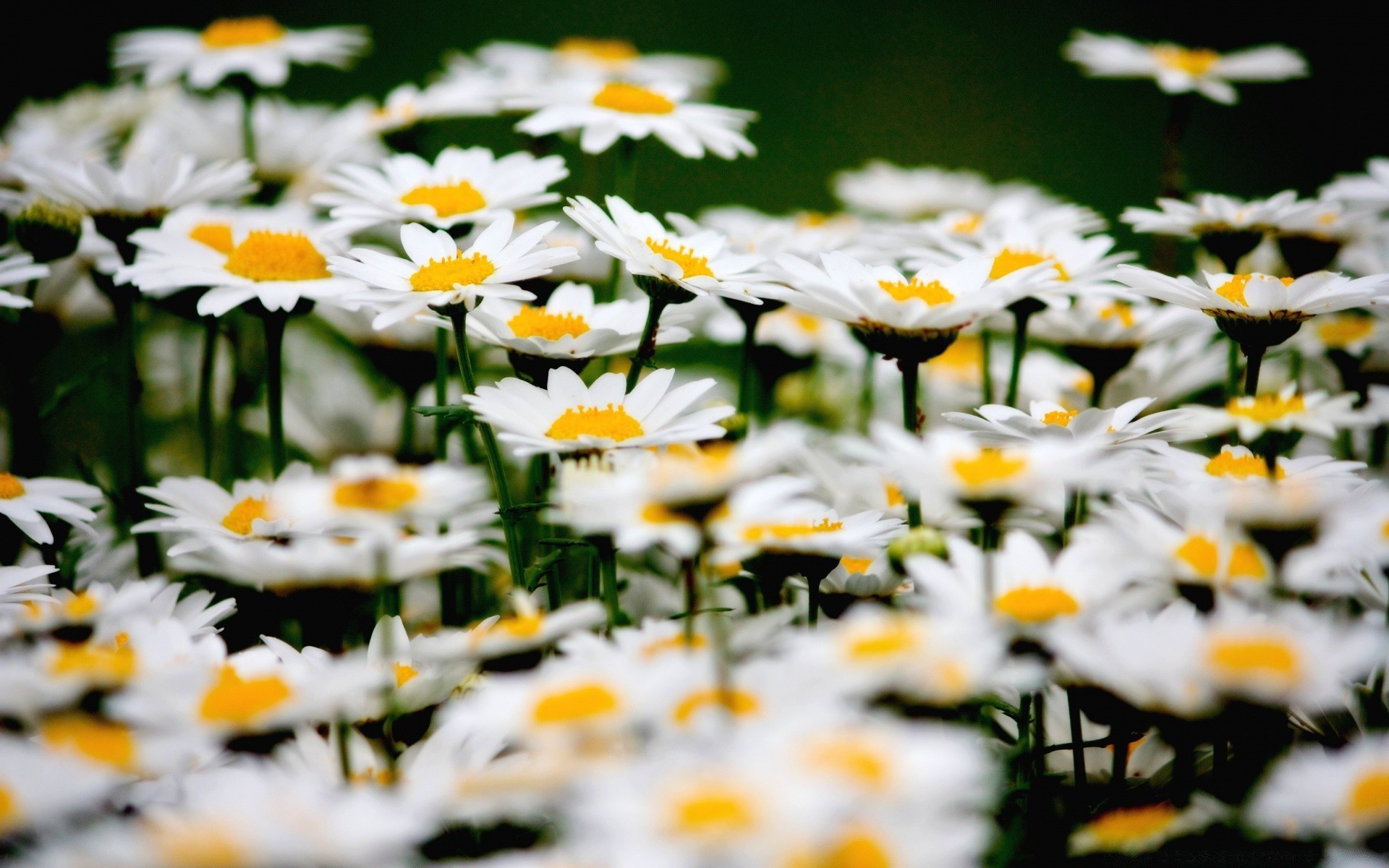 Pole stokrotek na ciemnym tle