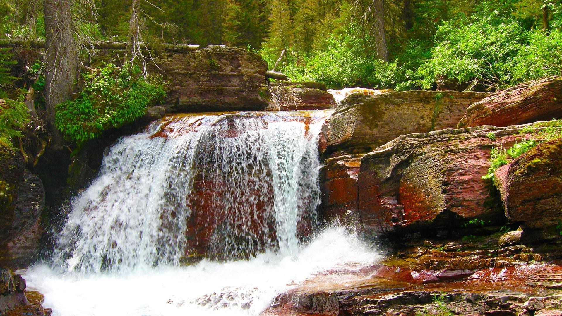 Wodospad wśród zielonego lasu