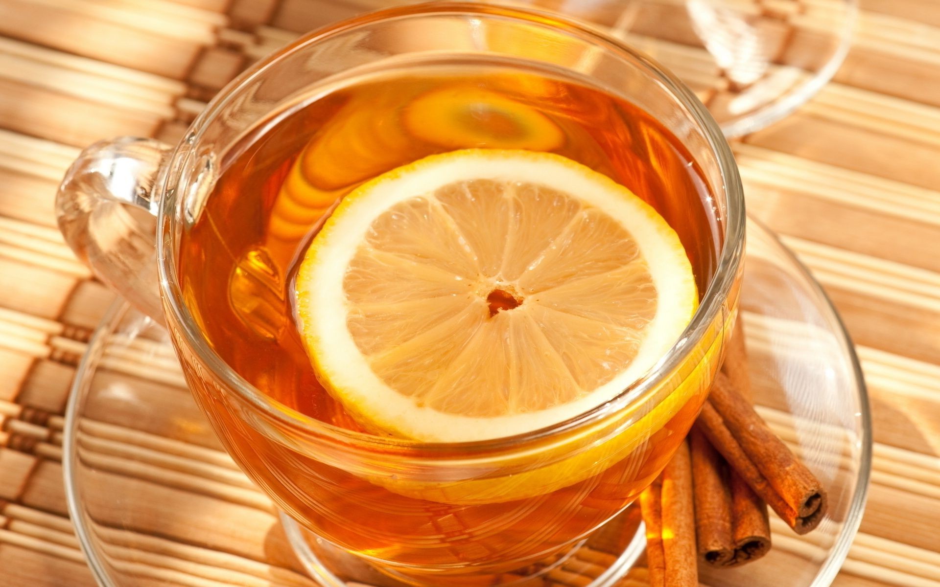 Piękny obraz herbaty z cytryną i laskami cynamonu
