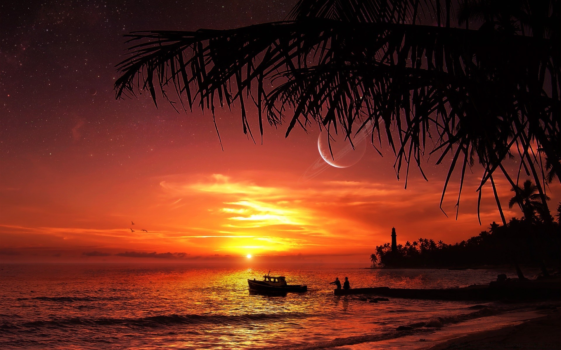 Latarnia morska w promieniach nocnego zachodu Słońca