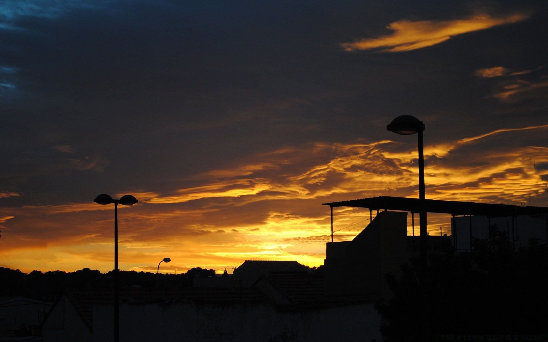 Łódź płynie wzdłuż miasta o zachodzie słońca
