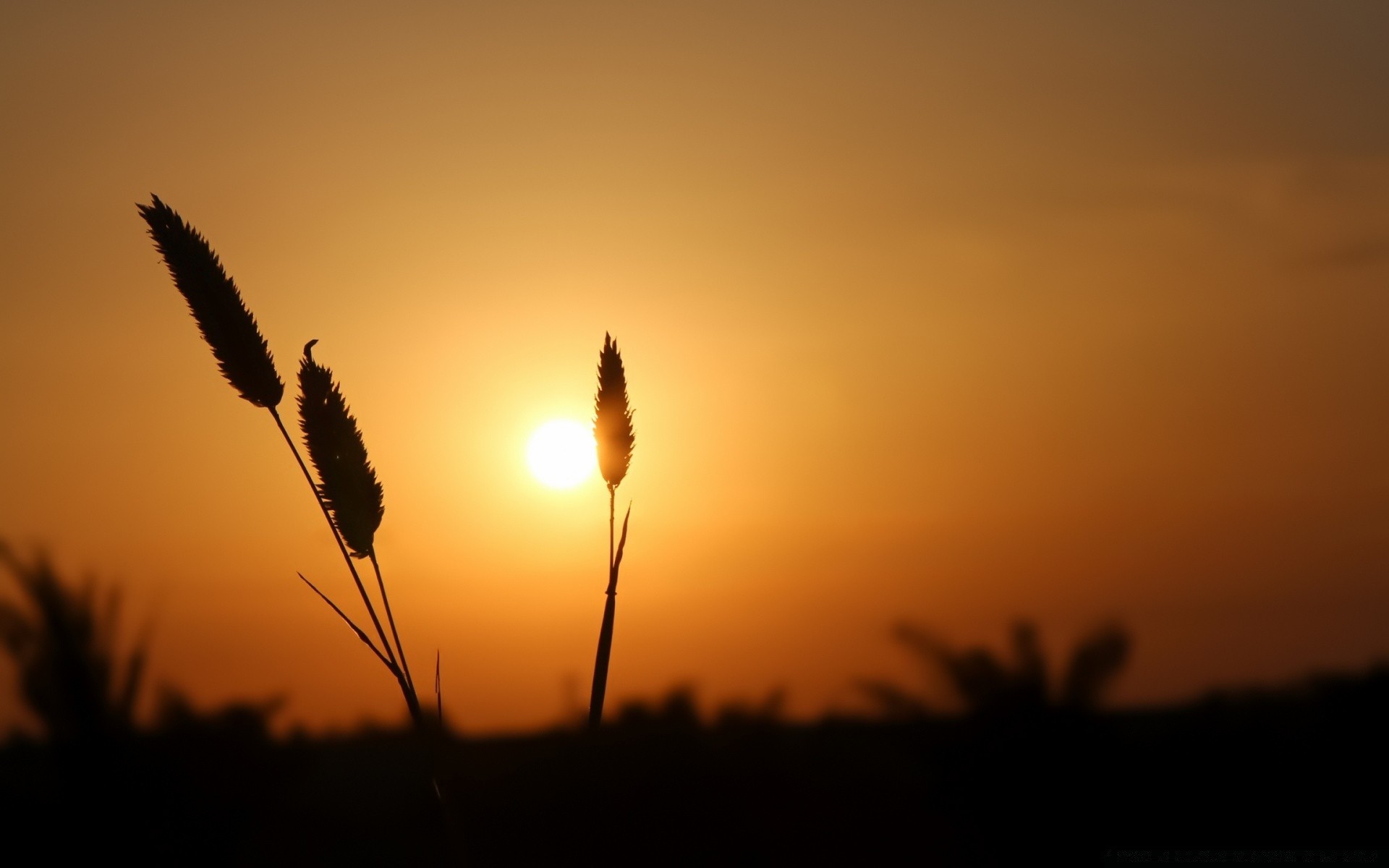 Pomarańczowe słońce zachodzi za horyzontem
