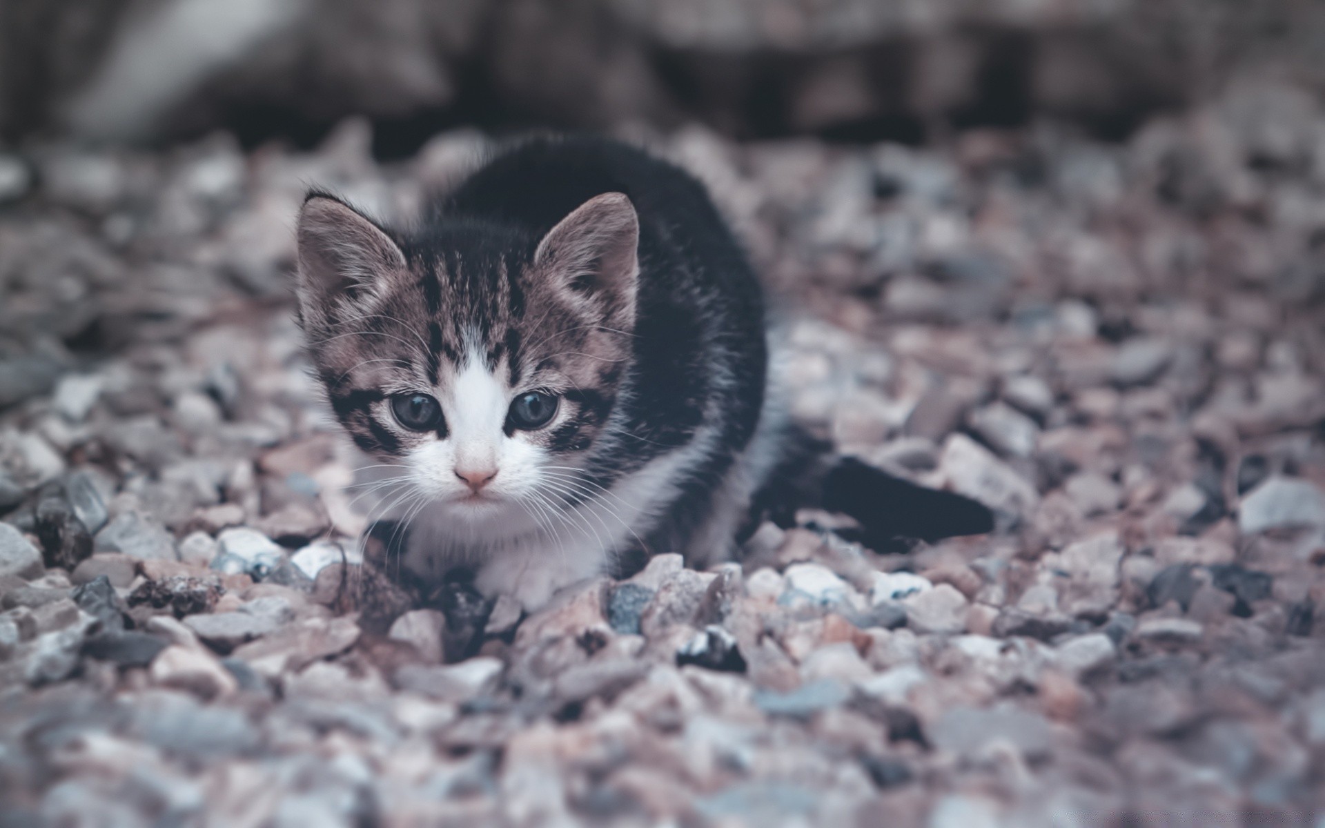 Śliczny kotek na kamiennej drodze