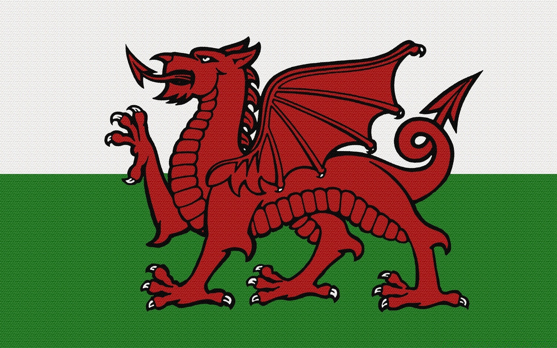 Biało-zielona flaga z Czerwonym smokiem, herb