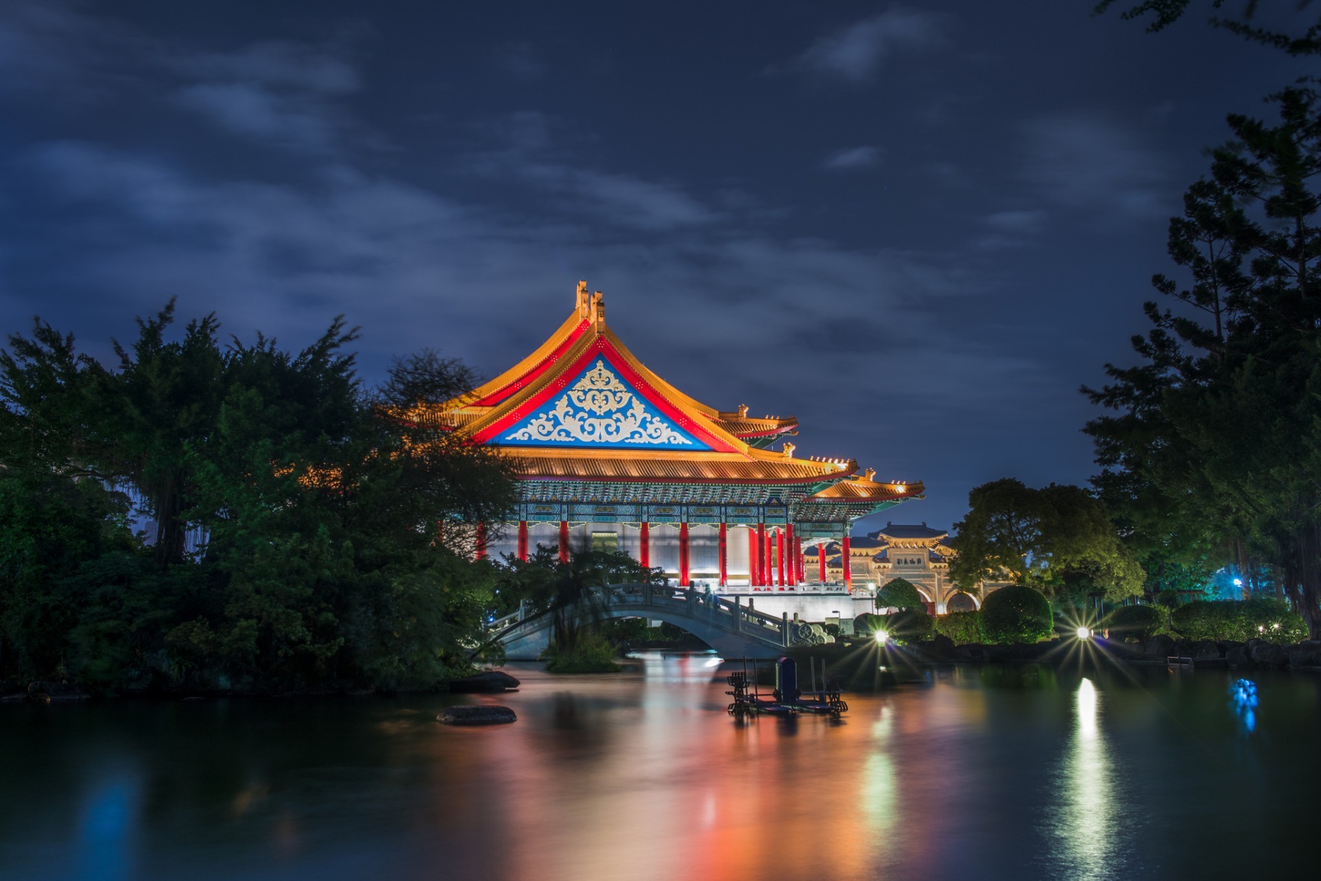 Piękny krajobraz na zamku z odbiciem w wodzie