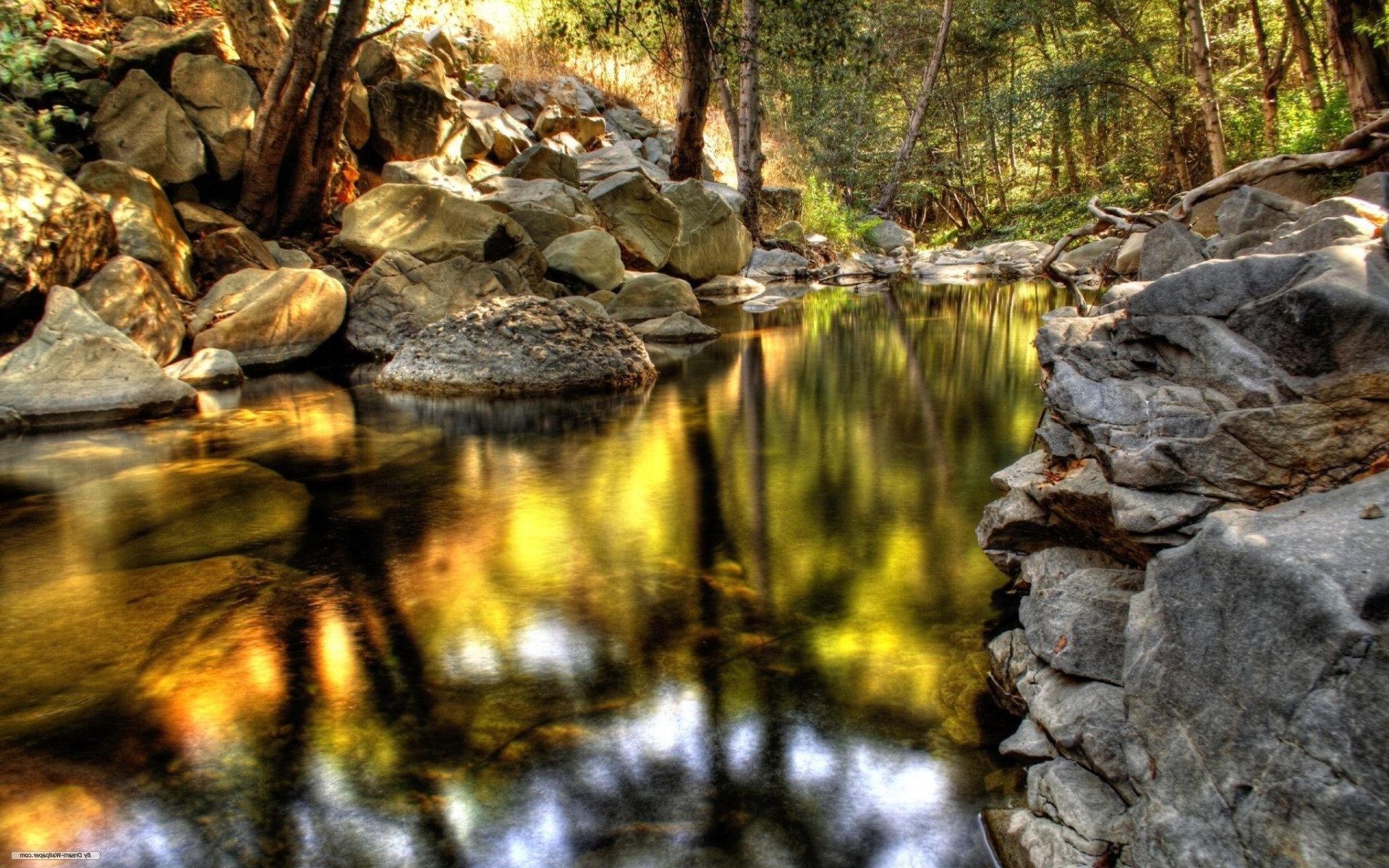 Przebłysk promieni słonecznych przez drzewa na polanie