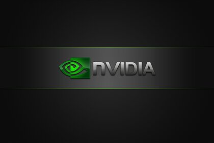 Ciemne tło. Logo jest zielone. Nvidia