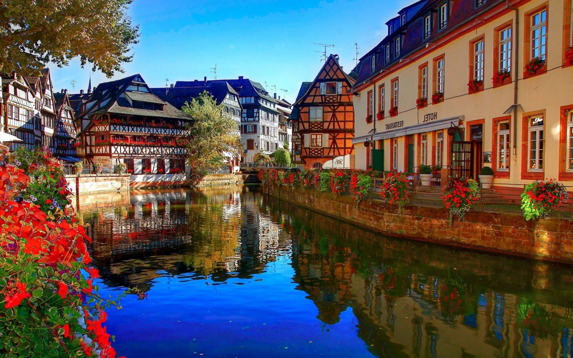Piękne domy stoją nad brzegiem rzeki