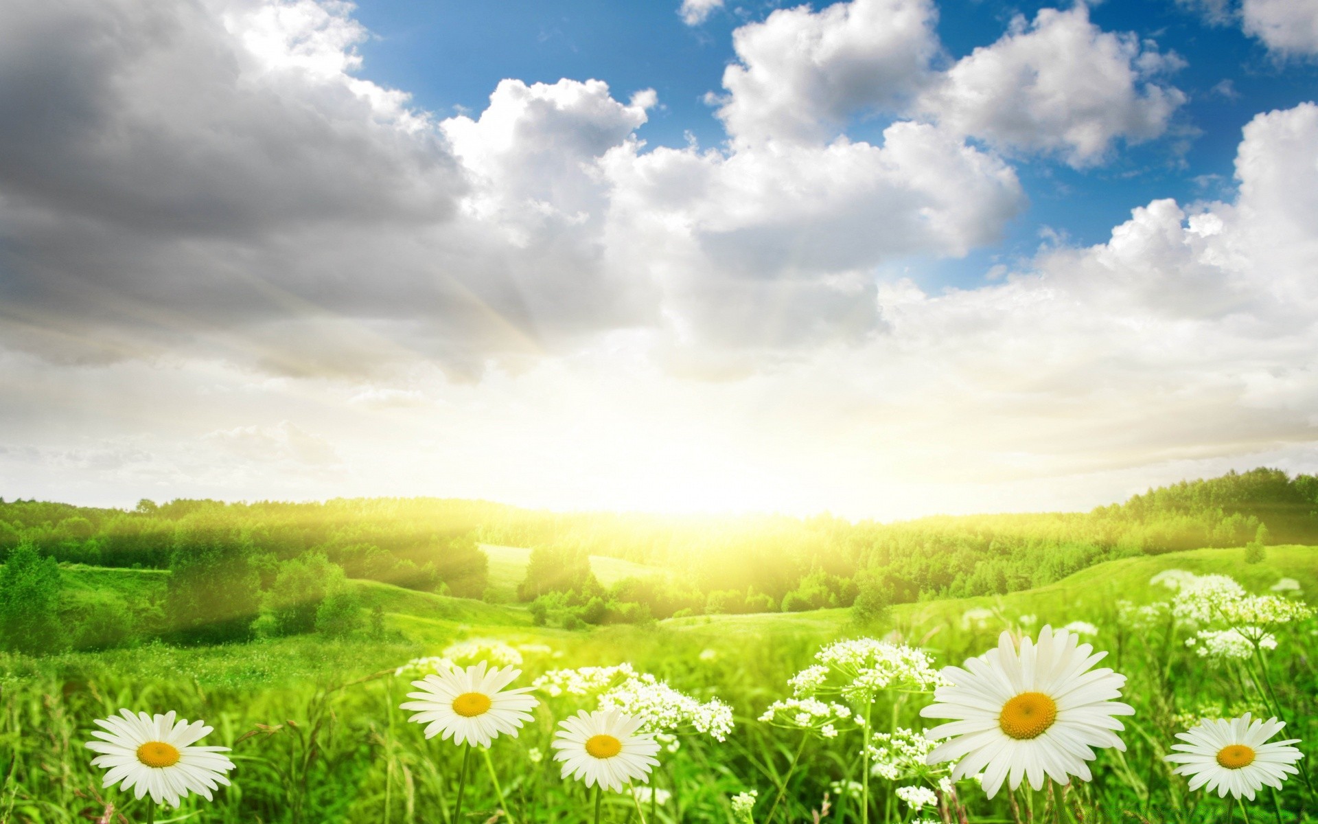 Letnia kwitnąca cebula ze śnieżnobiałymi stokrotkami