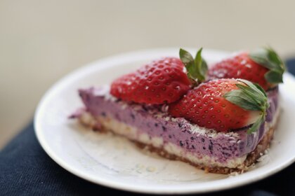 Deser truskawkowy. Pyszne truskawki. Różowe plamy