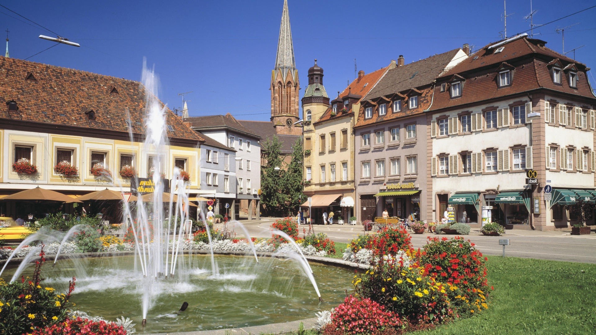 Architektura w stylu europejskim z fontanną