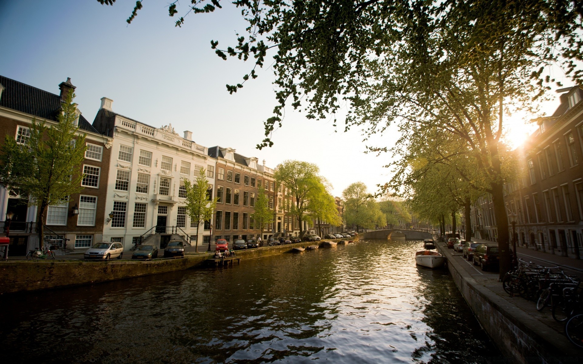 Weneckie kanały z mostami i łodziami