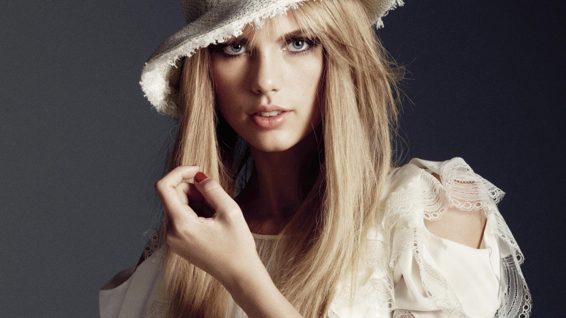 Portret dziewczyny w białej marszczonej sukience i kapeluszu
