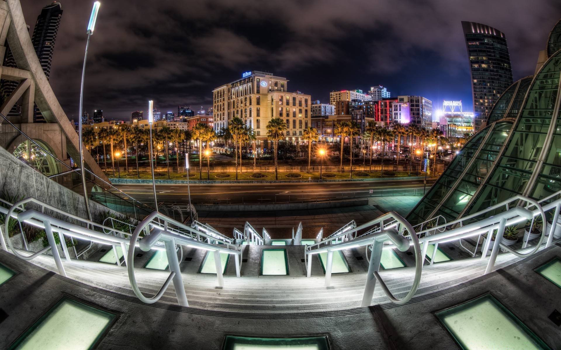 Światła nocnego miasta wzdłuż brzegów rzeki