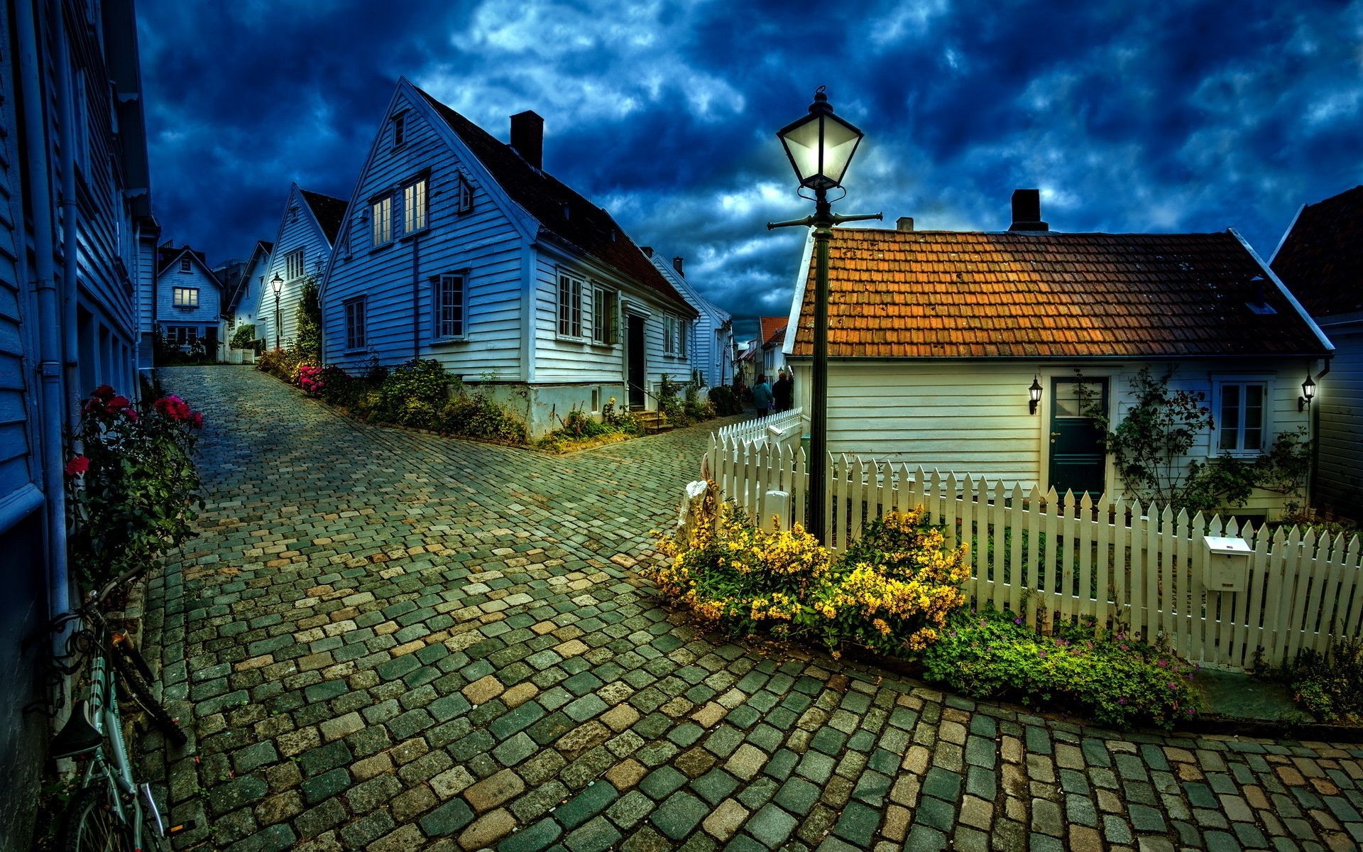 Ulica uliczka droga domy zima choinki Nowy Rok Boże Narodzenie
