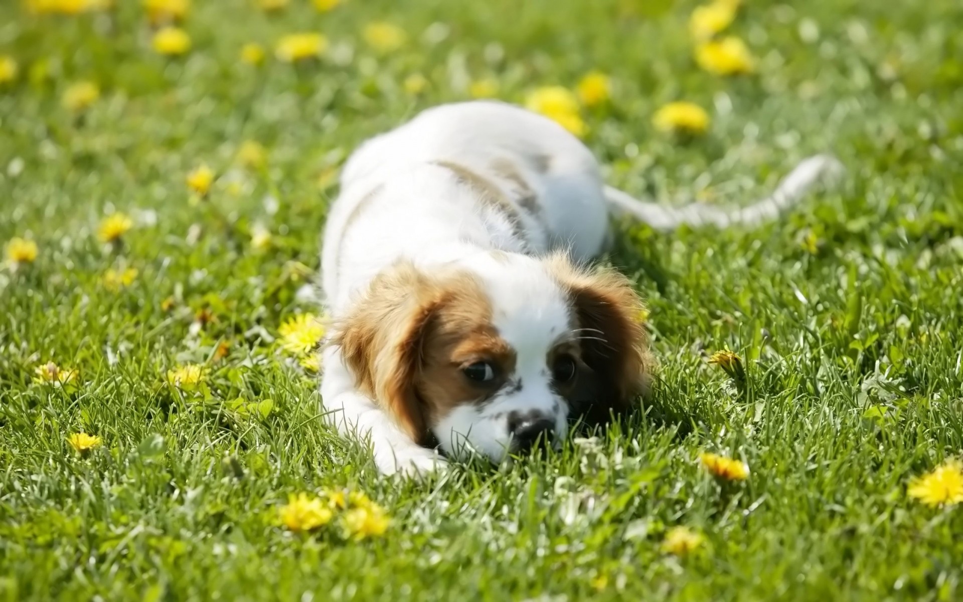 Mały piesek w okularach pozuje w basenie obok kaczki