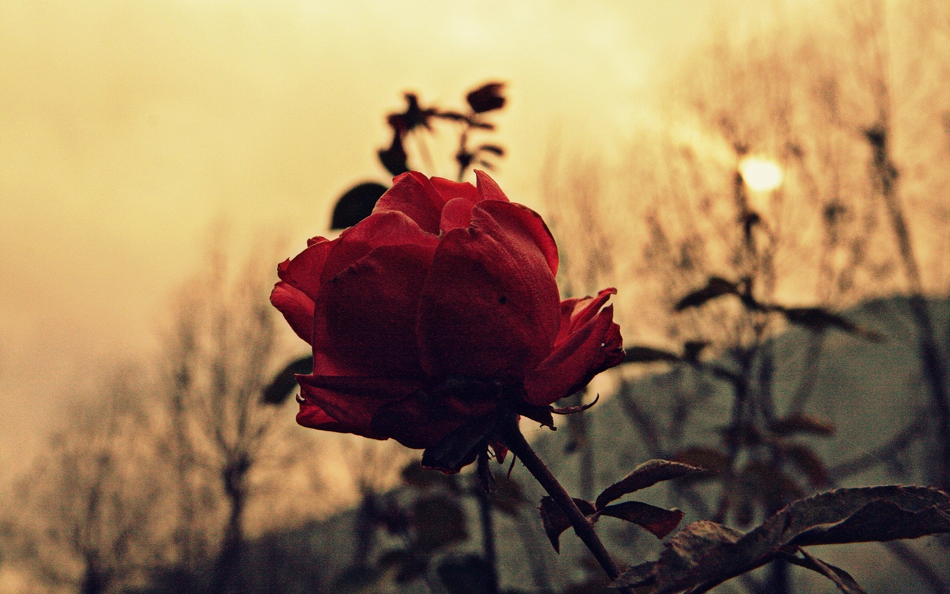 Krajobraz. Vintage. Drzewo. Pomarańczowe tło