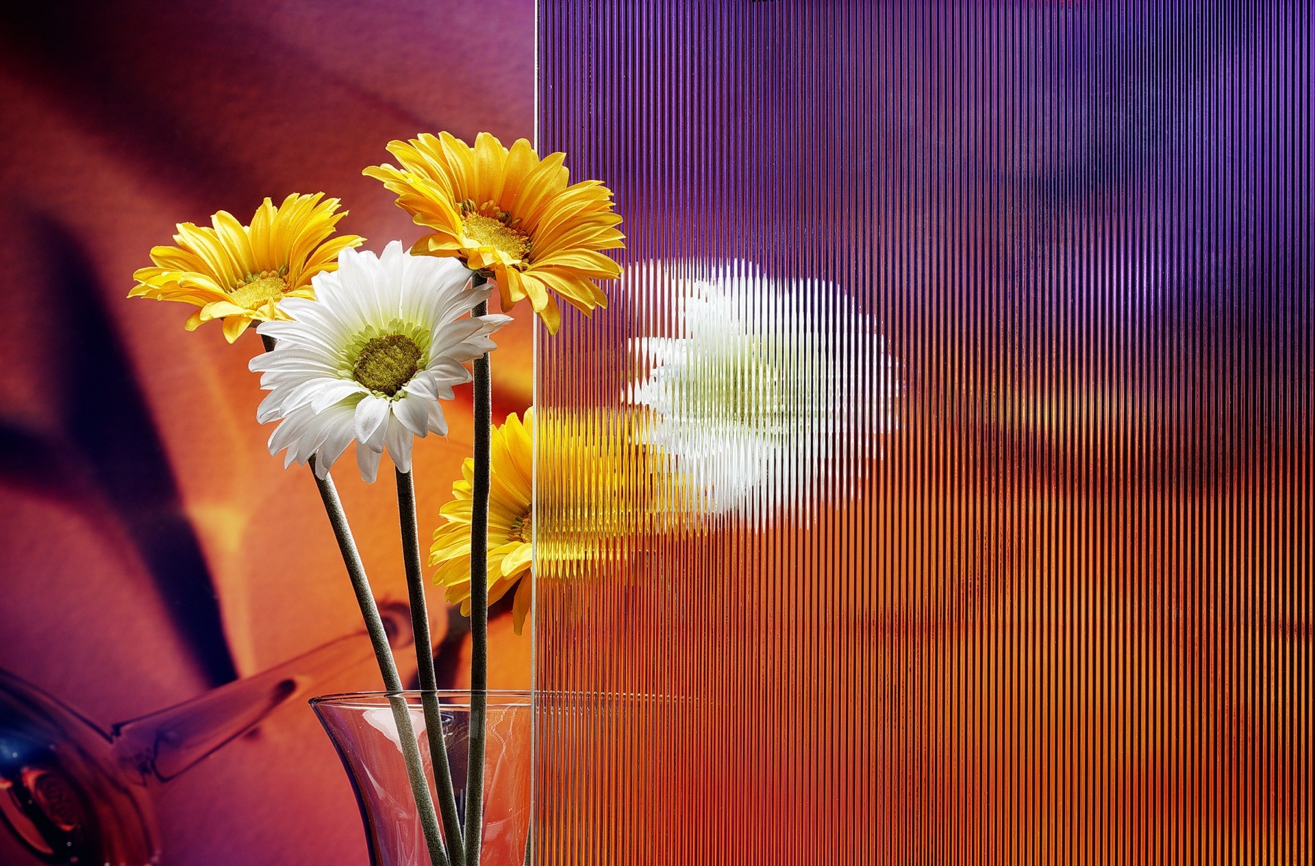 Kolorowe stokrotki w szklanym wazonie