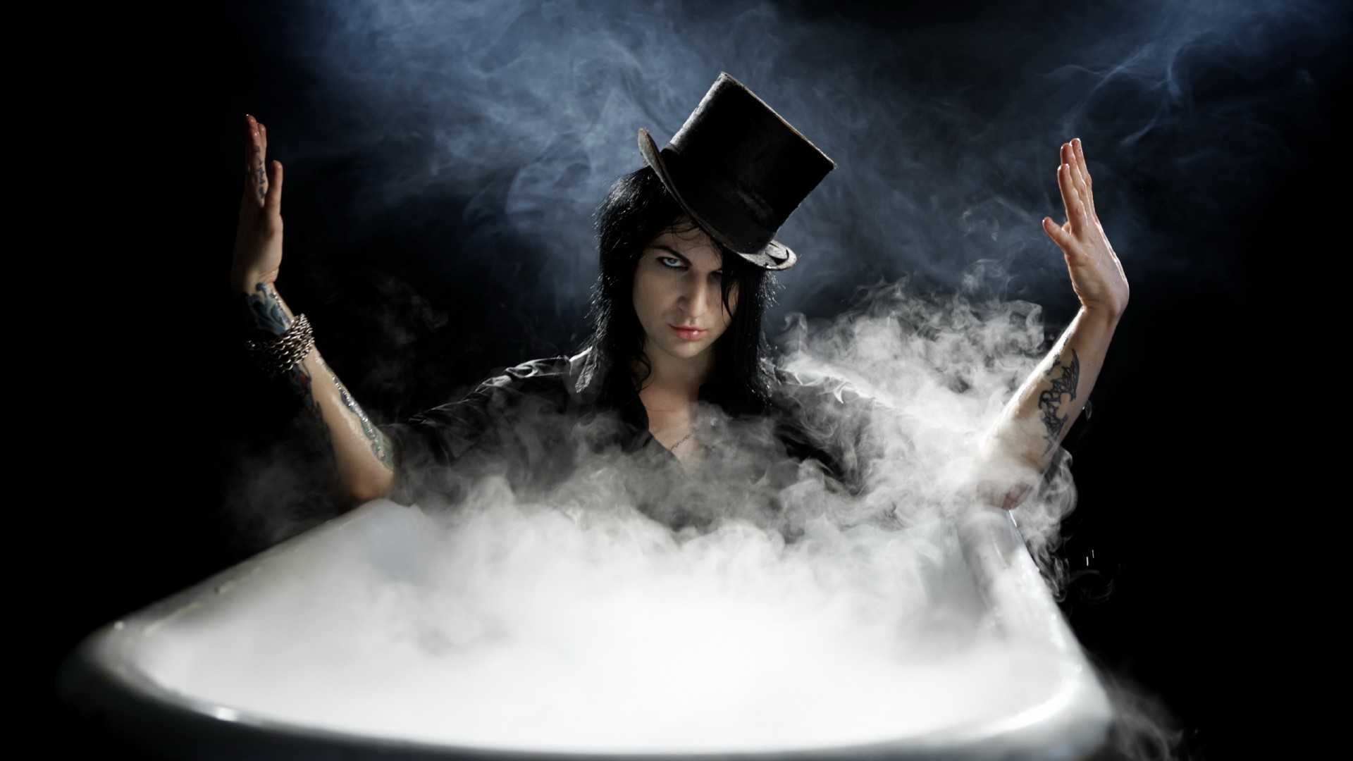 Dziewczyna w celindrze kąpiel z parą lub dymem