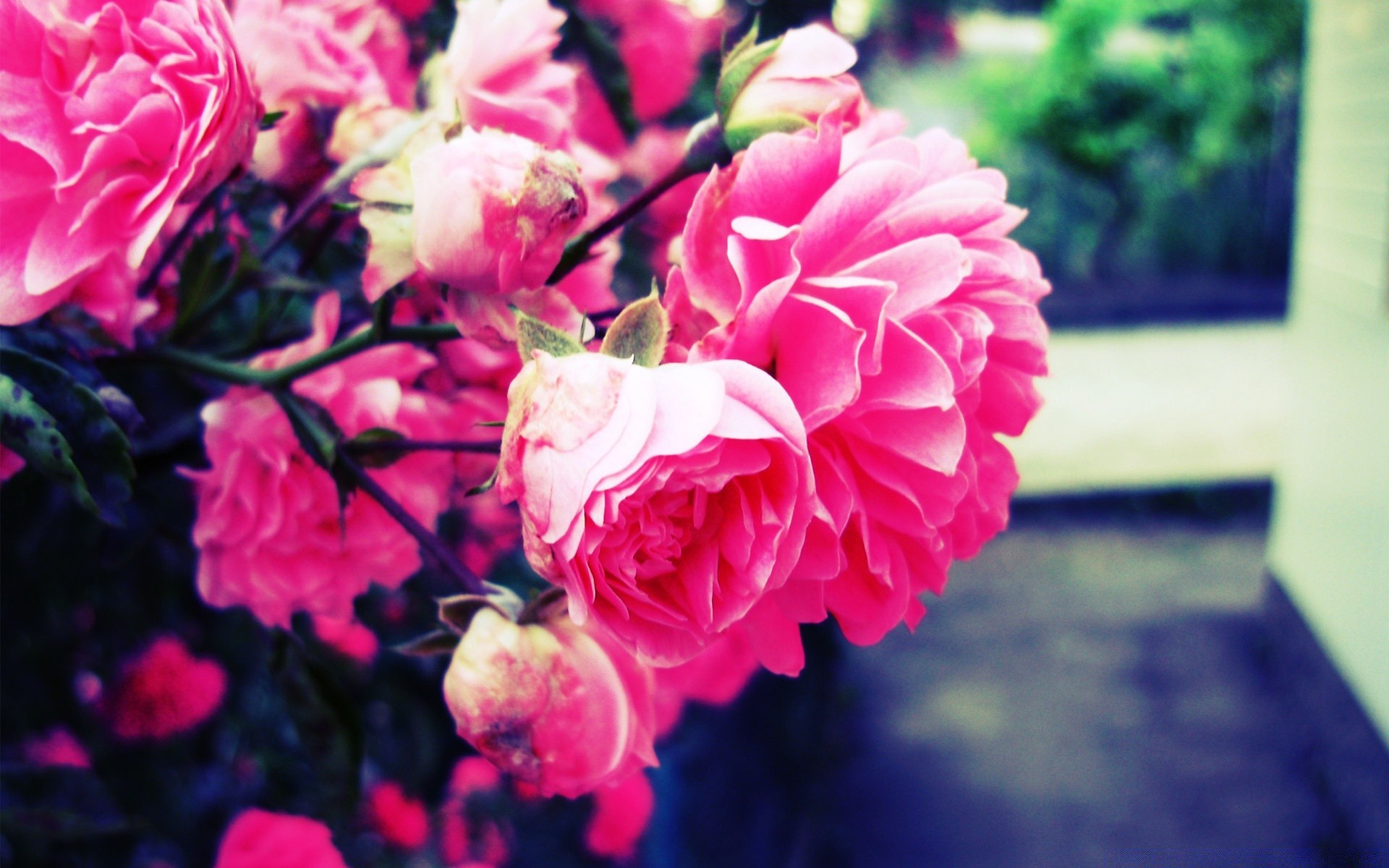 Duży bukiet róż na parapecie