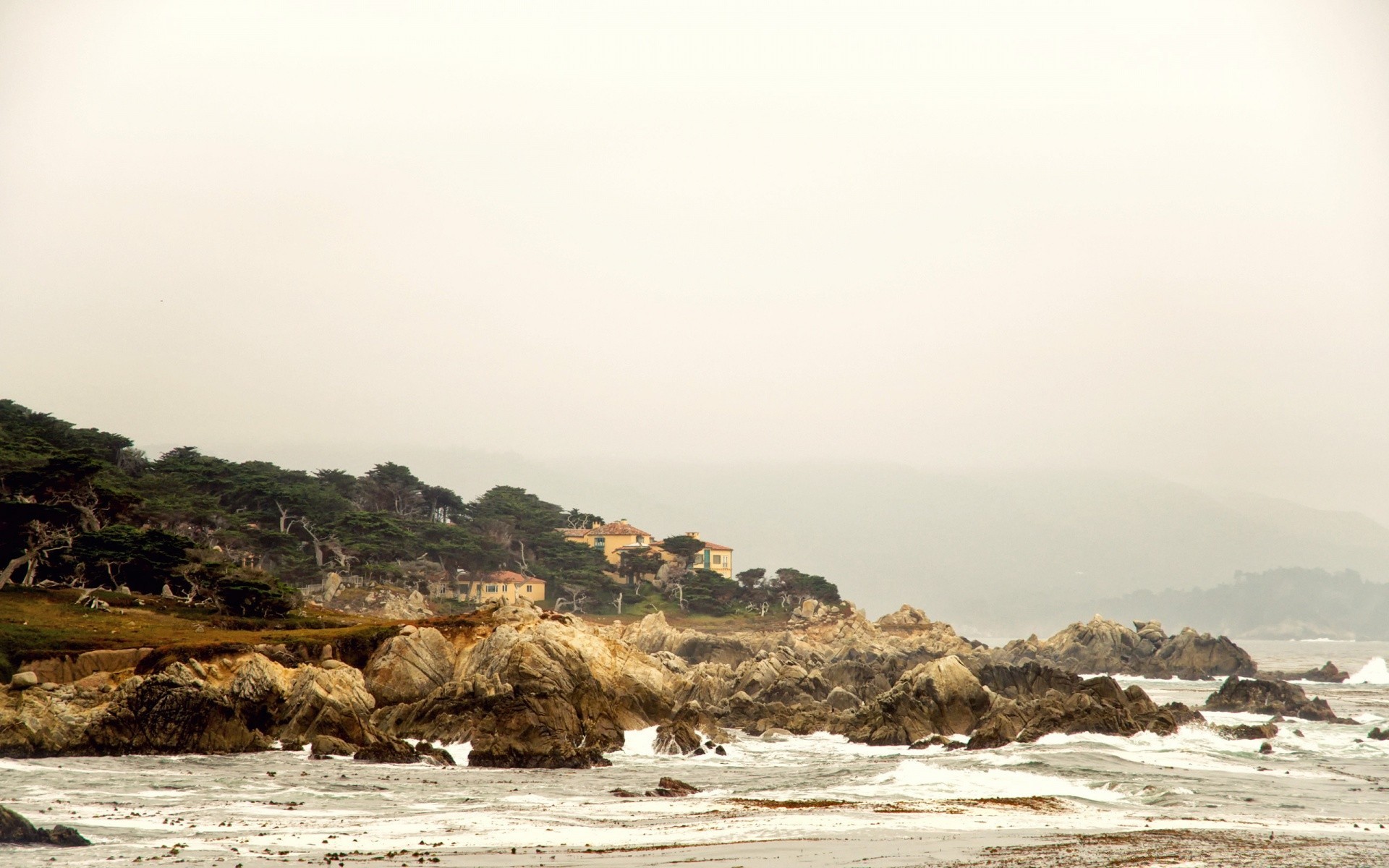 Czarno-białe góry w oddali i czas odpływu Oceanu widok z okna