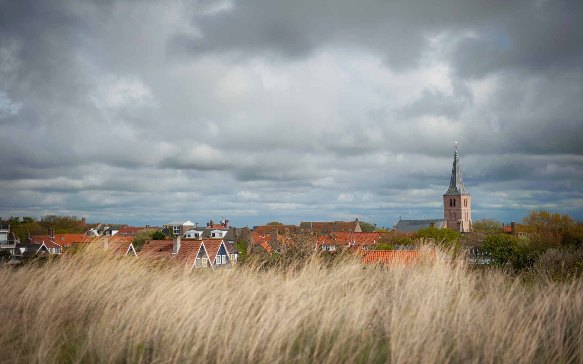 Widok na trawiasty Brzeg, jezioro i nadchodzący świt