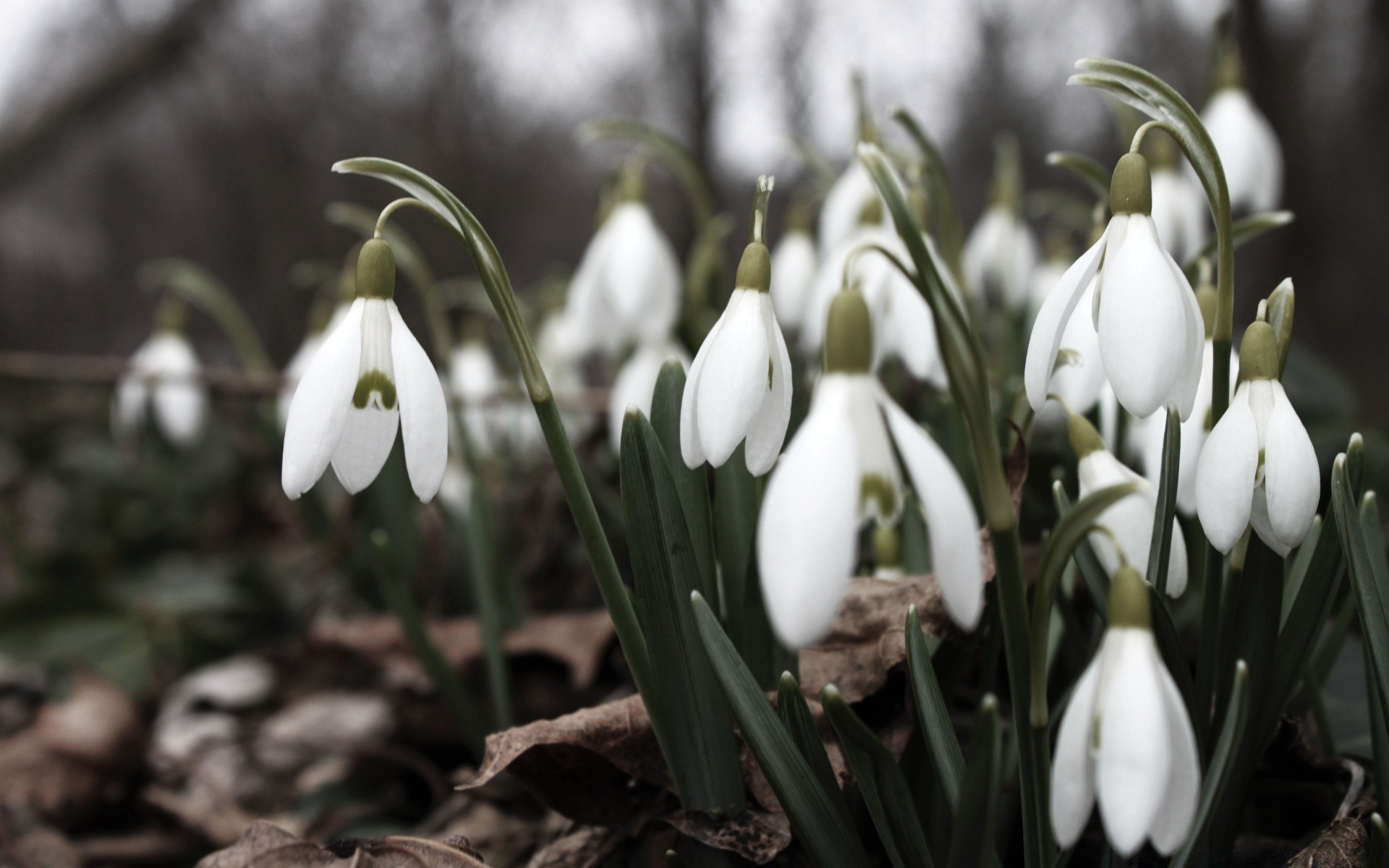 Przebiśniegi białe wczesną wiosną