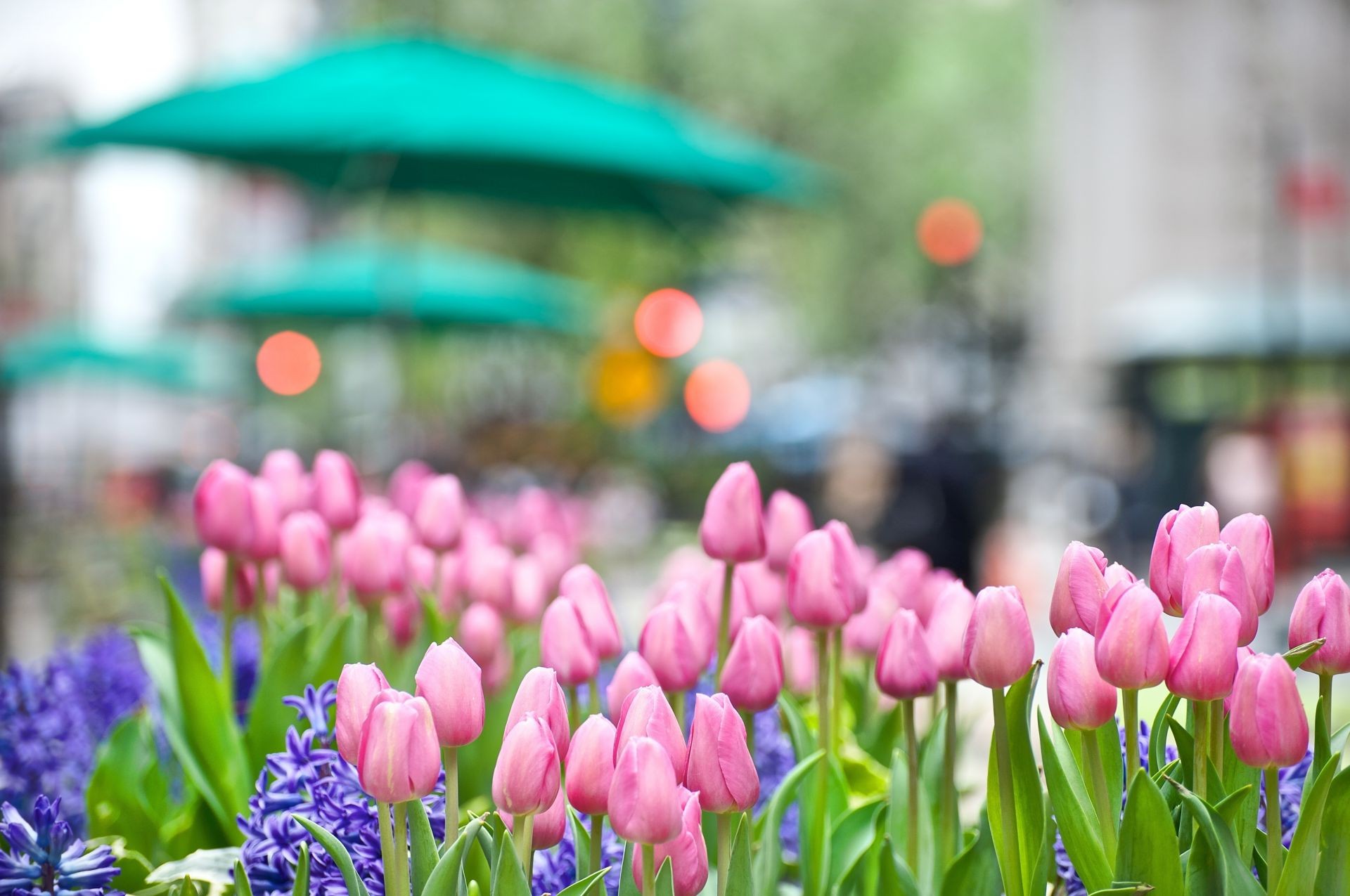 Wiosna, kwietnik z żółtymi żonkilami i czerwonymi tulipanamiWiosna, kwietnik z żółtymi żonkilami i czerwonymi tulipanami