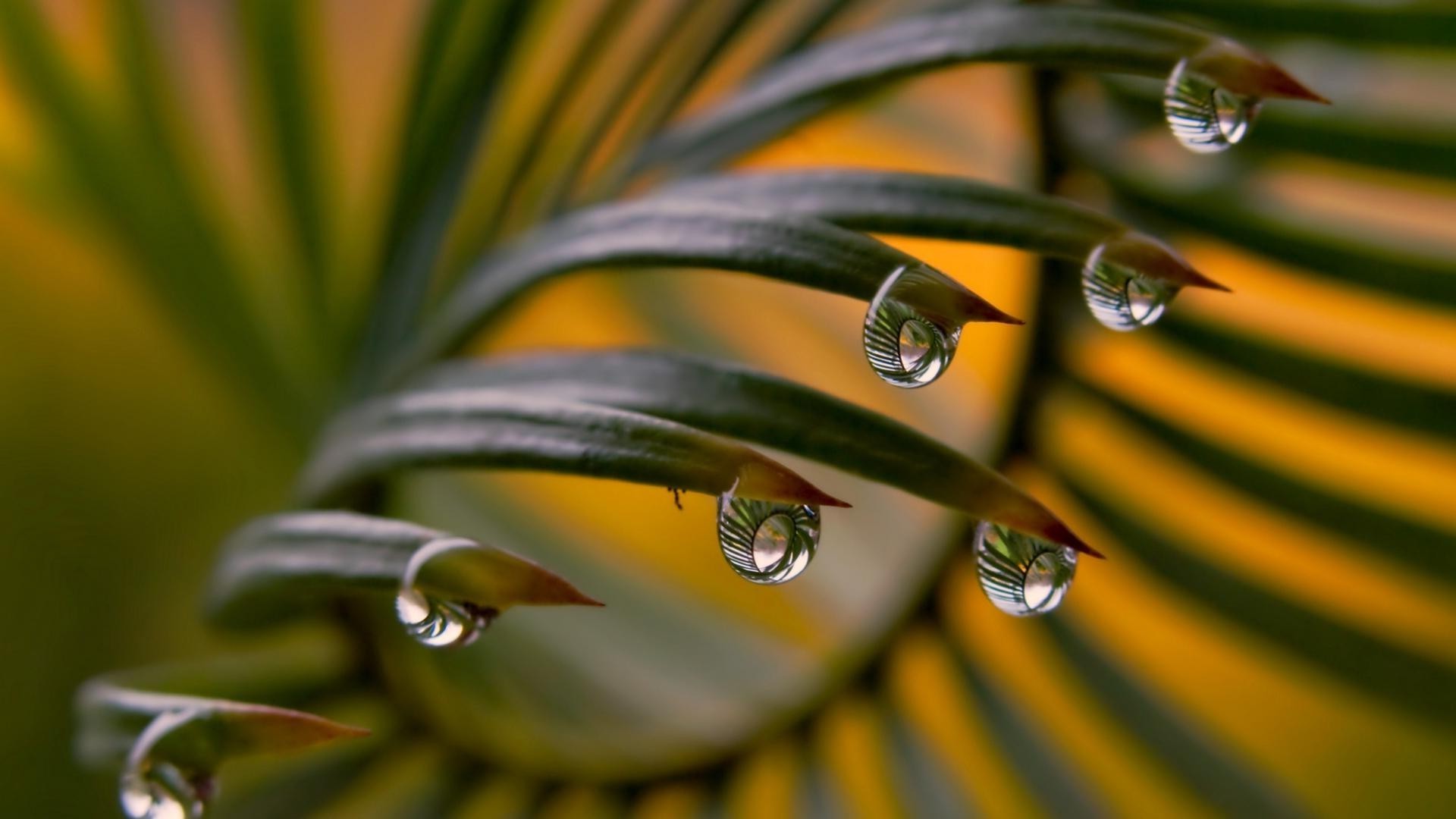 Palma o zachodzie słońca z przezroczystymi kroplamiPalma o zachodzie słońca z przezroczystymi kroplami