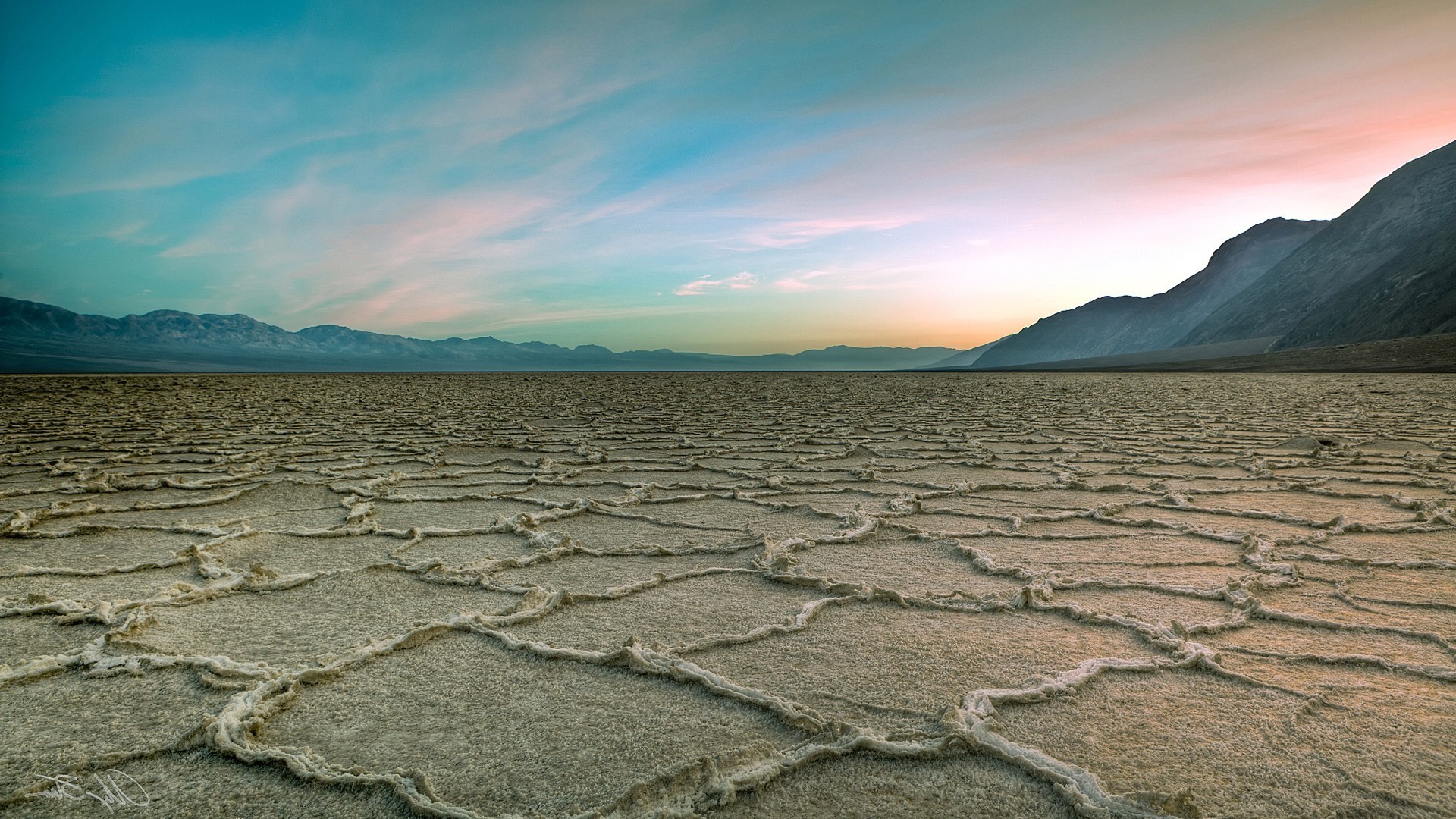 Ziemia długo pozostawiona bez wody na tle różowego nieba
