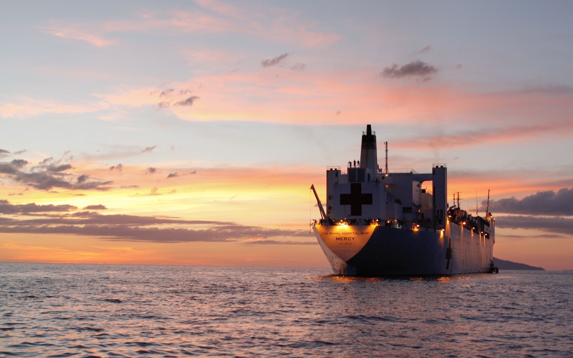 Trawler wojskowy, morski Zachód słońca