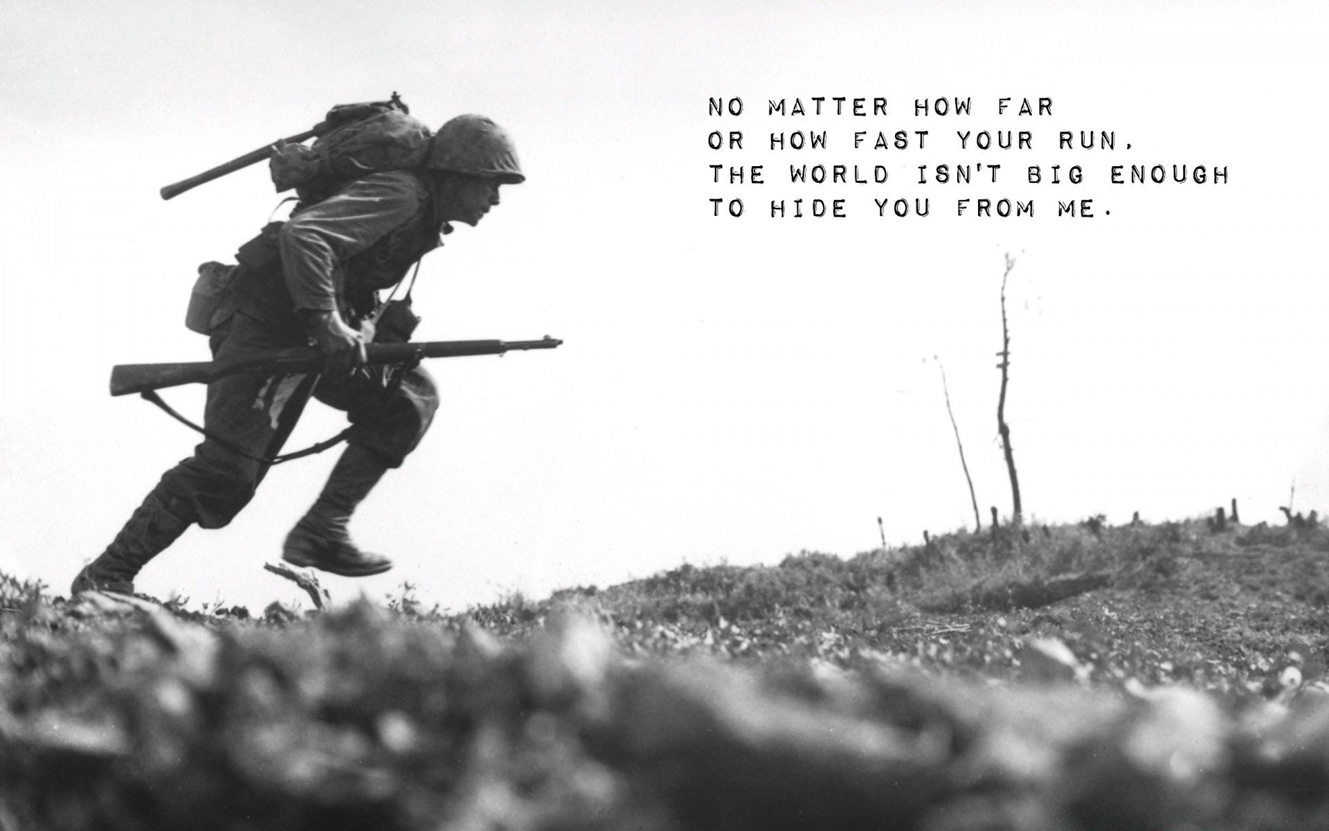 Żołnierze z bronią podczas działań wojennych w czerni i bieli