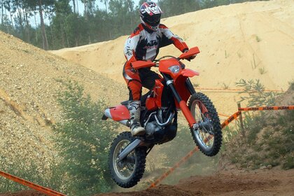Uczestnik wyścigu motocyklowego z łatwością pokonuje Tor