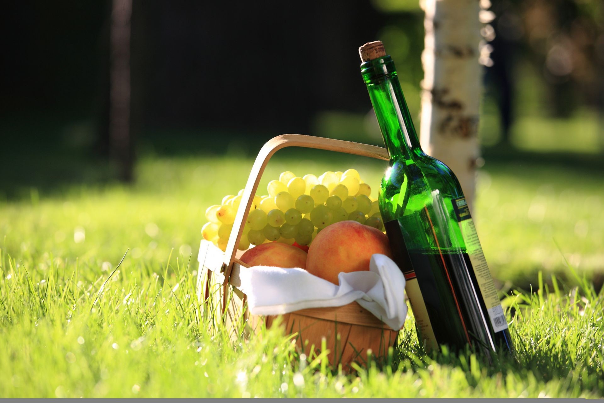 Dziewczyna w sukience w Kropki siedząca na trawie pod ogromnym jasnym parasolem