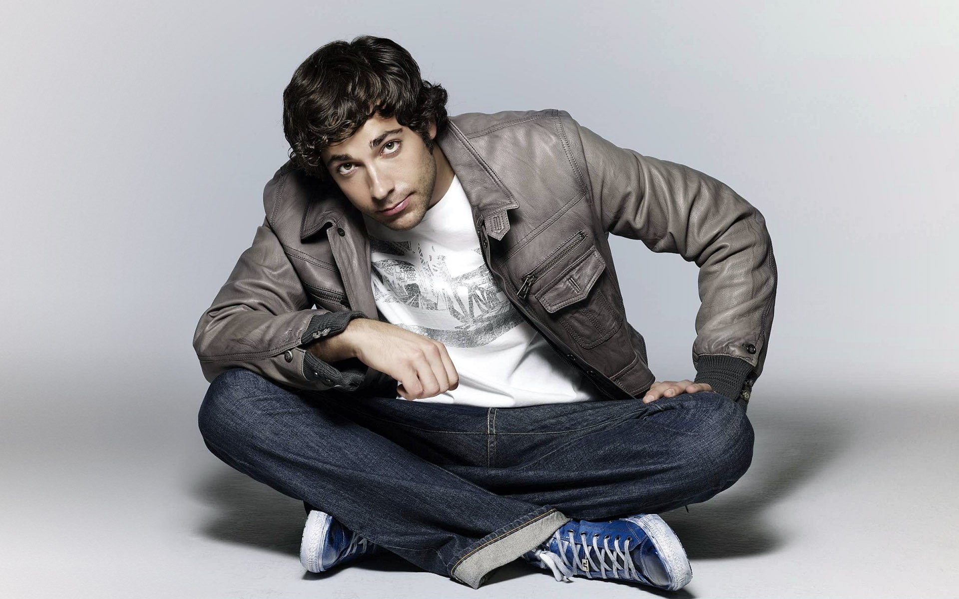 Mężczyzna siedzi z nogami schowanymi do siebie i oparł się o logtem